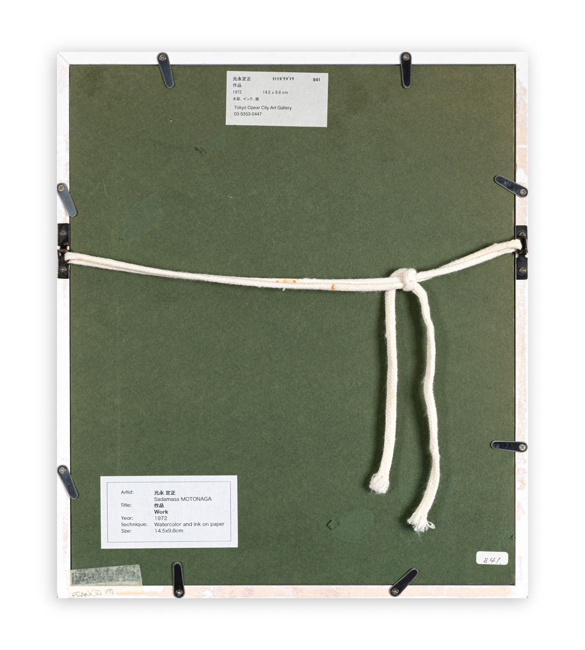 Etichetta Tokyo Opera City Art Gallery (Tokyo) al retro