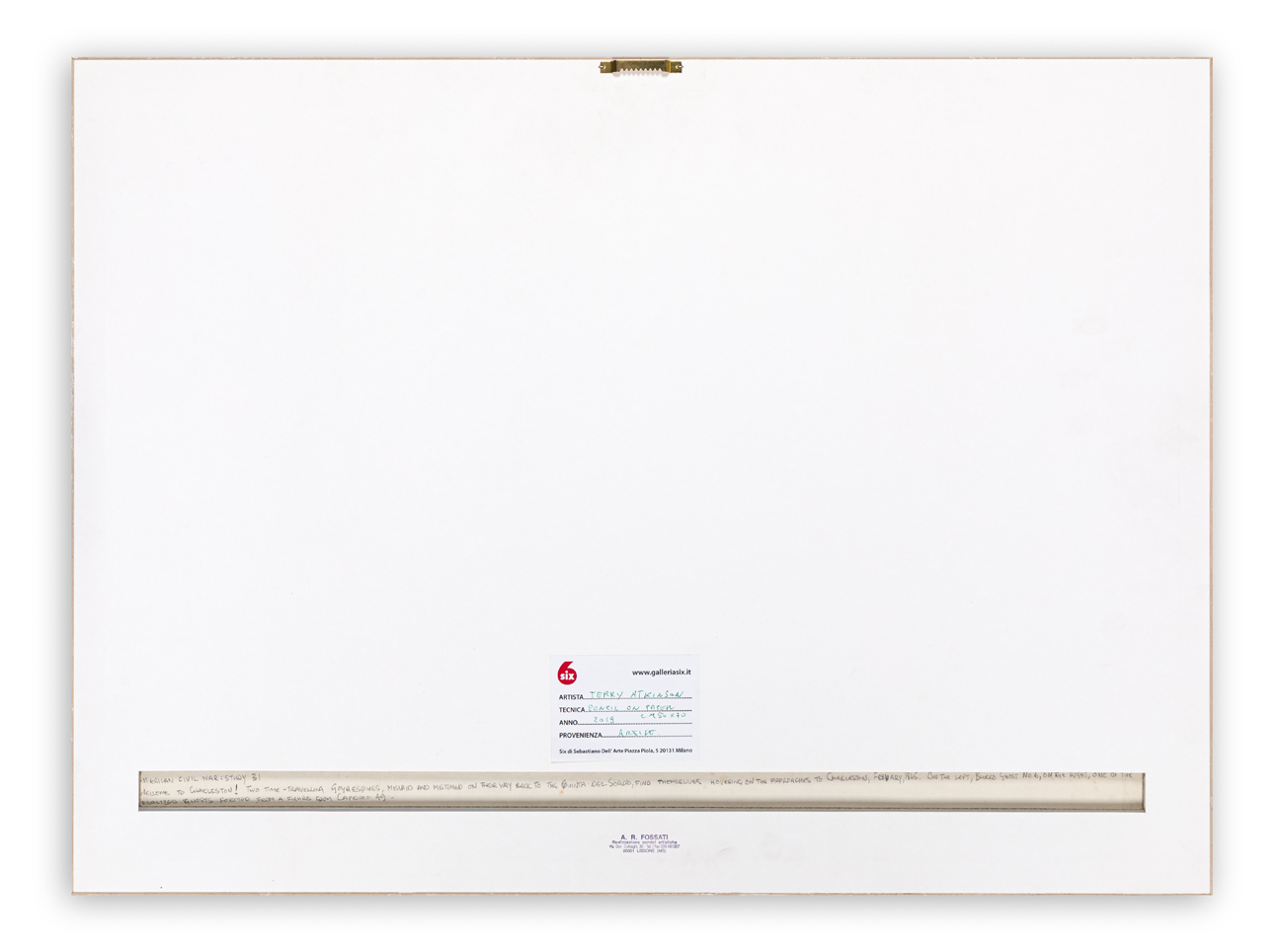 Etichetta della Galleria Six (MI) al retro del cartone protettivo
