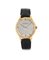 Diam. mm 37. C. 18K yellow gold with overlap lugs (very good). D. silvered wave-like design engraved with applied indexes and Arabic numerals, centre seconds (original, very good). M. manual winding (very good). Dial, case and movement signed.