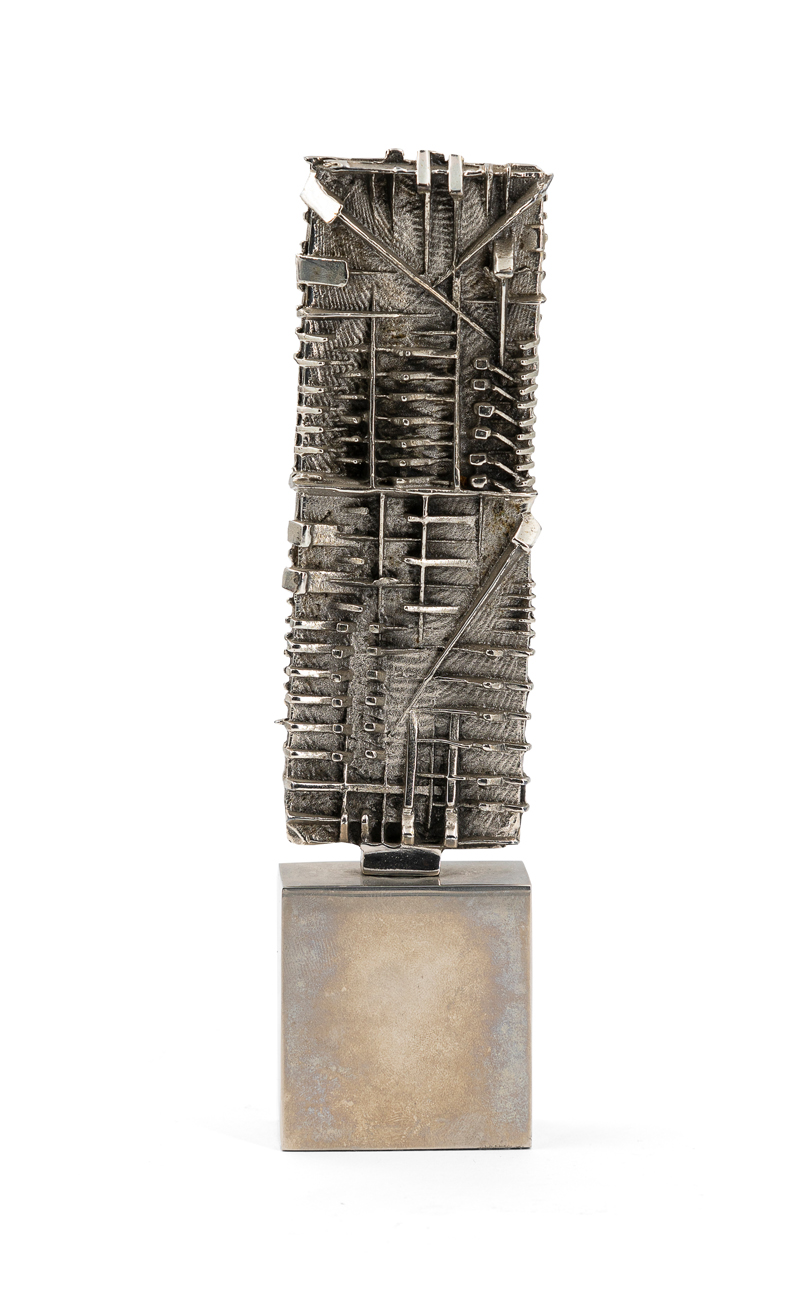 Scultura in bronzo argentato e ottone cromato fusa a cera persa