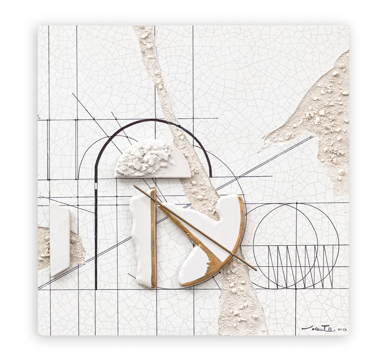 Lastra in refrattario con elementi lustrati in oro a terzo fuoco con inclusioni di grani e polvere di marmo