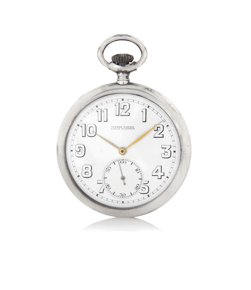 Diam. mm 53. C. openface, silver (good). D. white with painted Arabic numerals and subsidiary seconds (good). M. anchor escapement, keyless dress (good). Dial, case and movement signed.