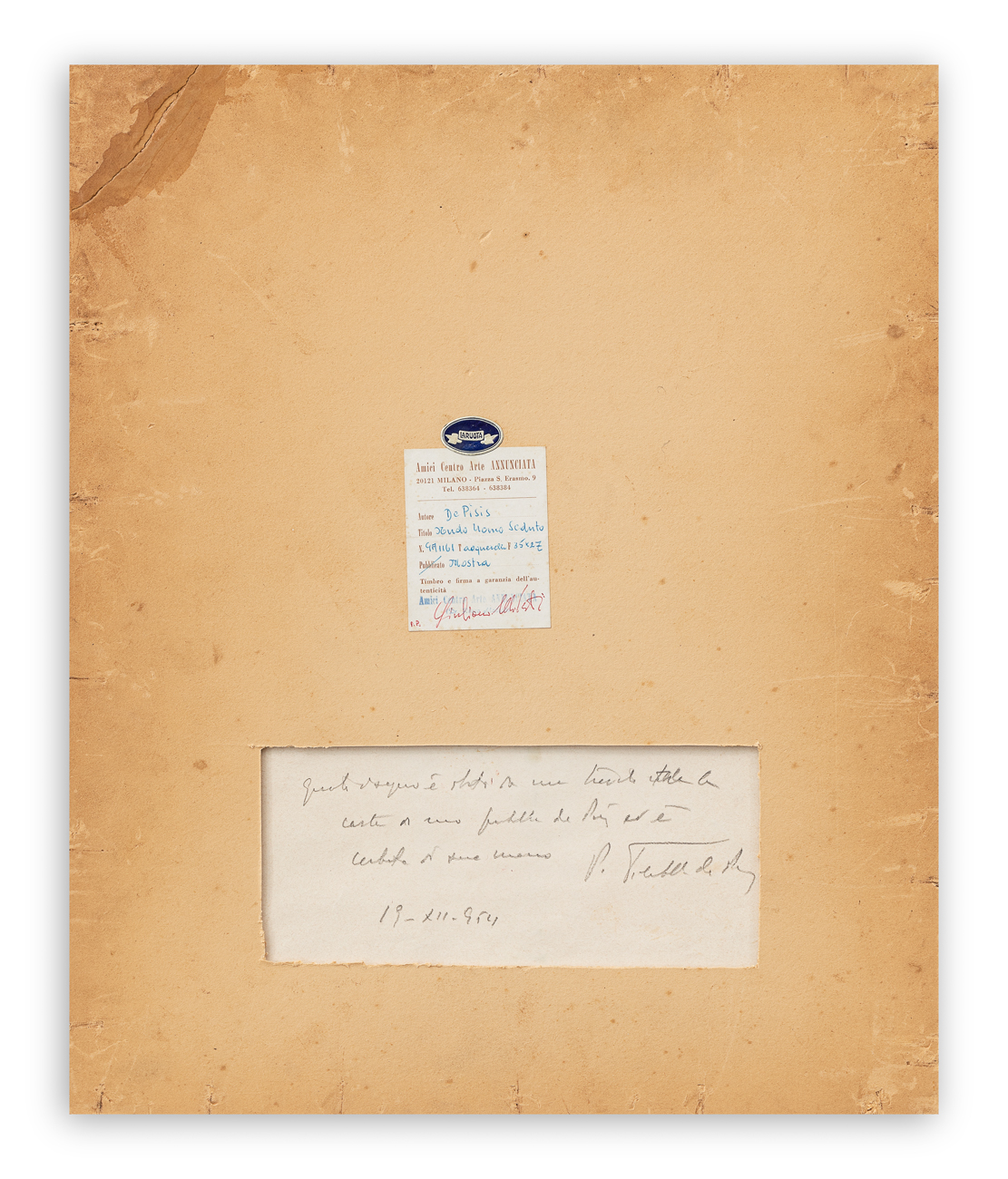 Etichetta Amici Centro Arte Annunciata (MI) al retro