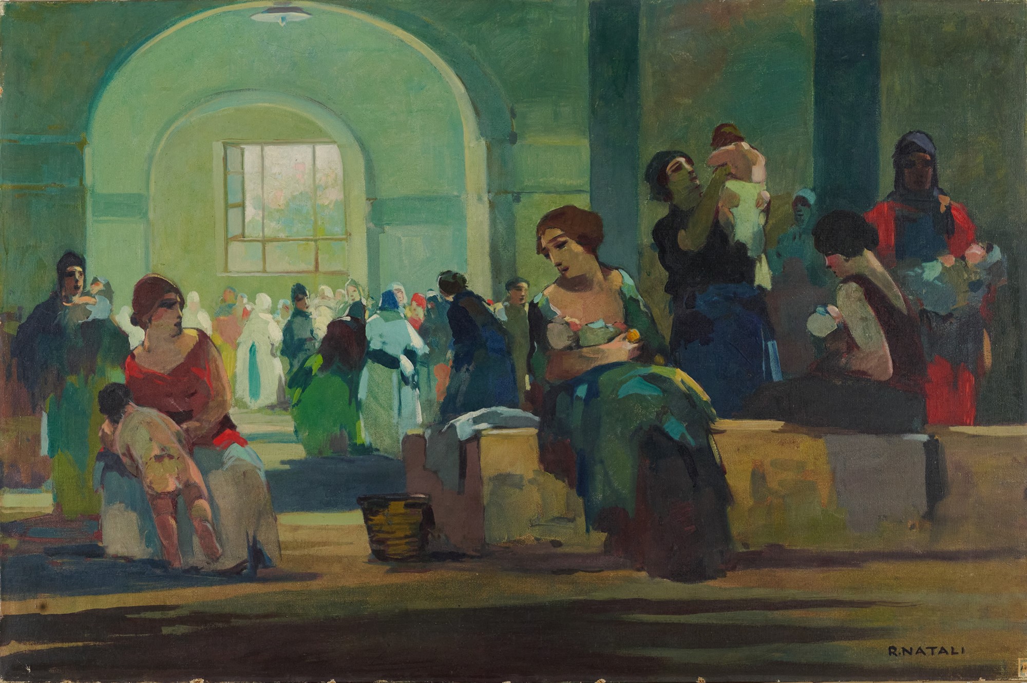 Renato Natali (Livorno, 1883 - 1979) Interno della maternità 1925 Olio su...
