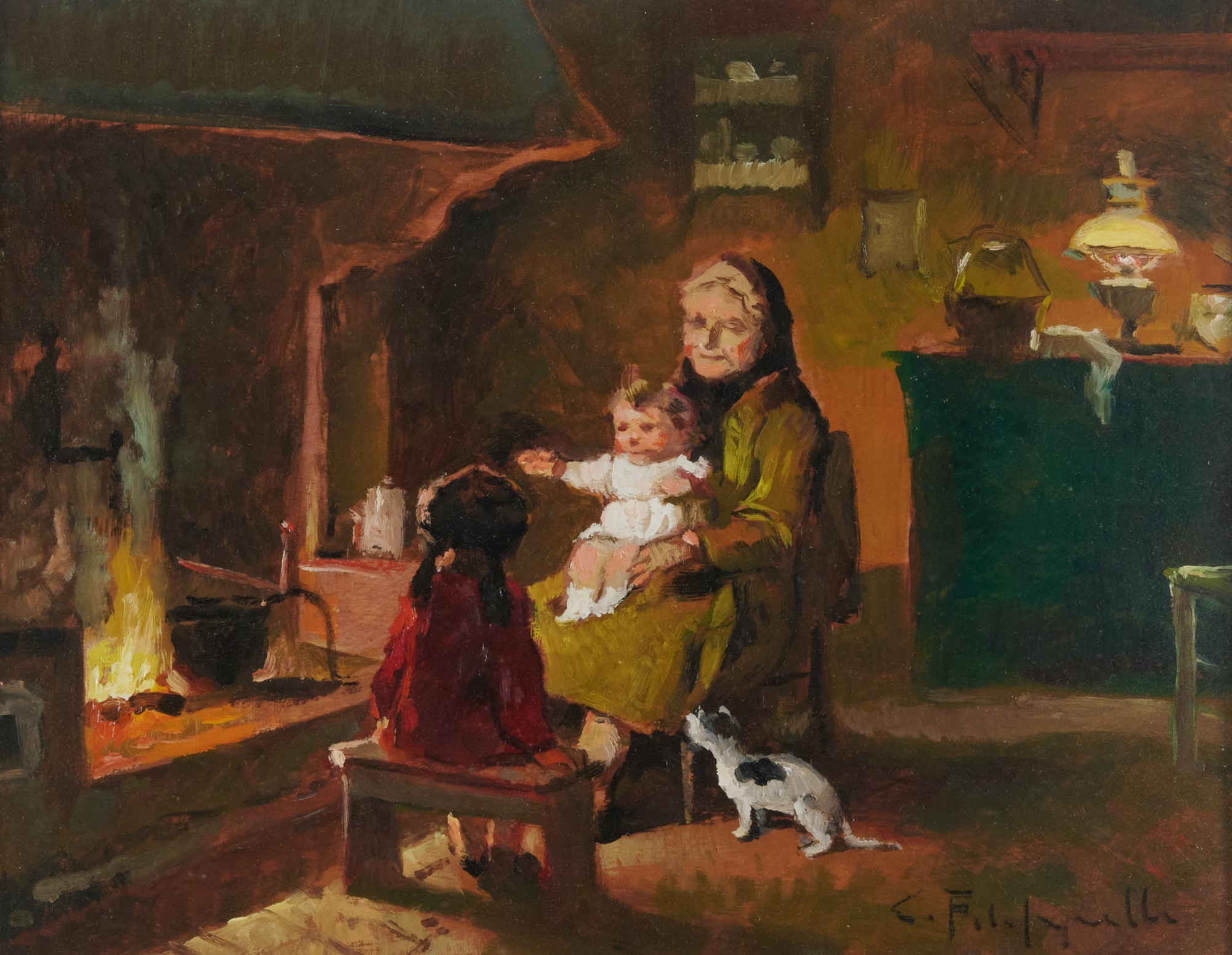 Cafiero Filippelli (Livorno, 1889 - 1973) La nonna Olio su tela cm. 24x31...