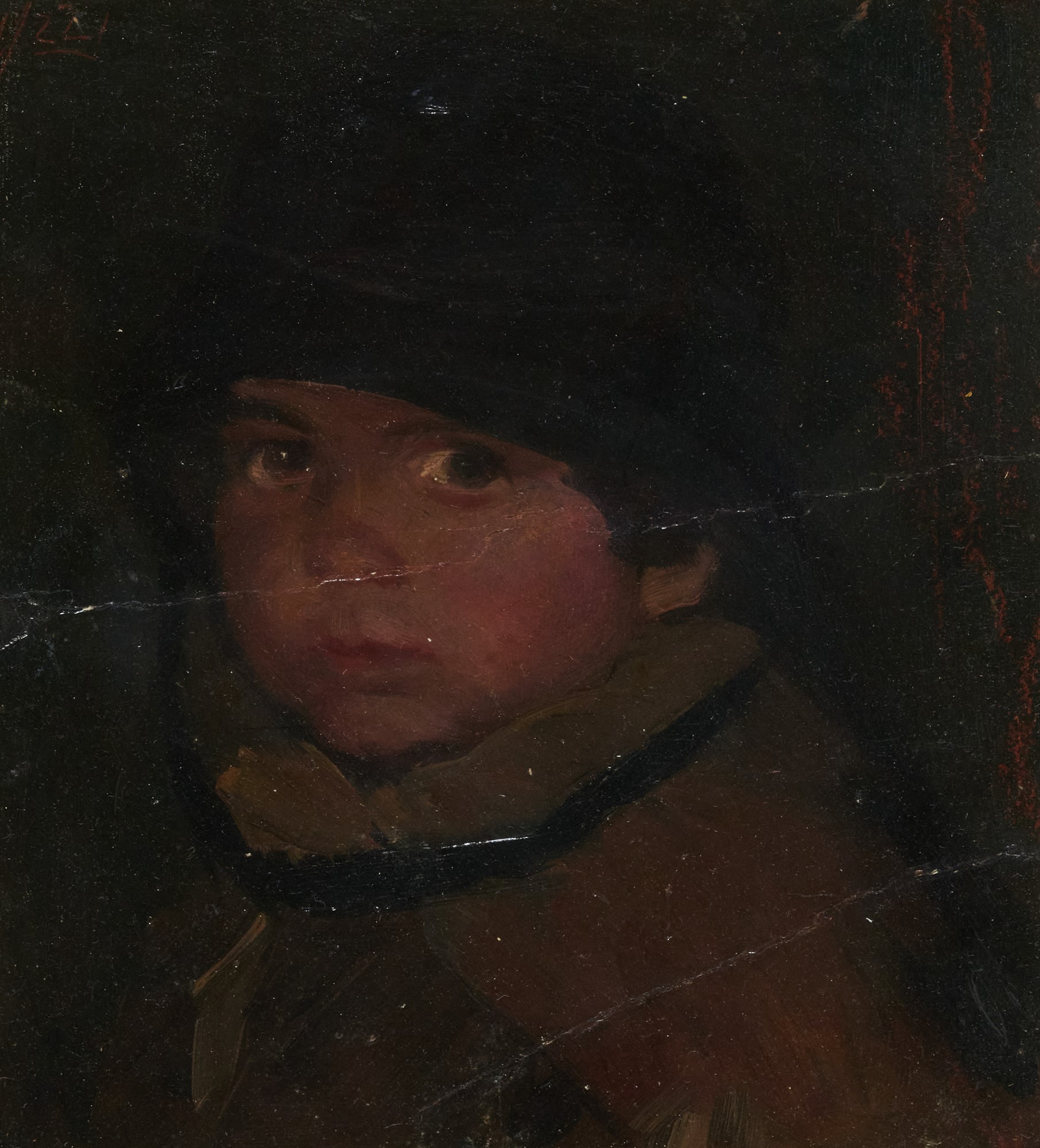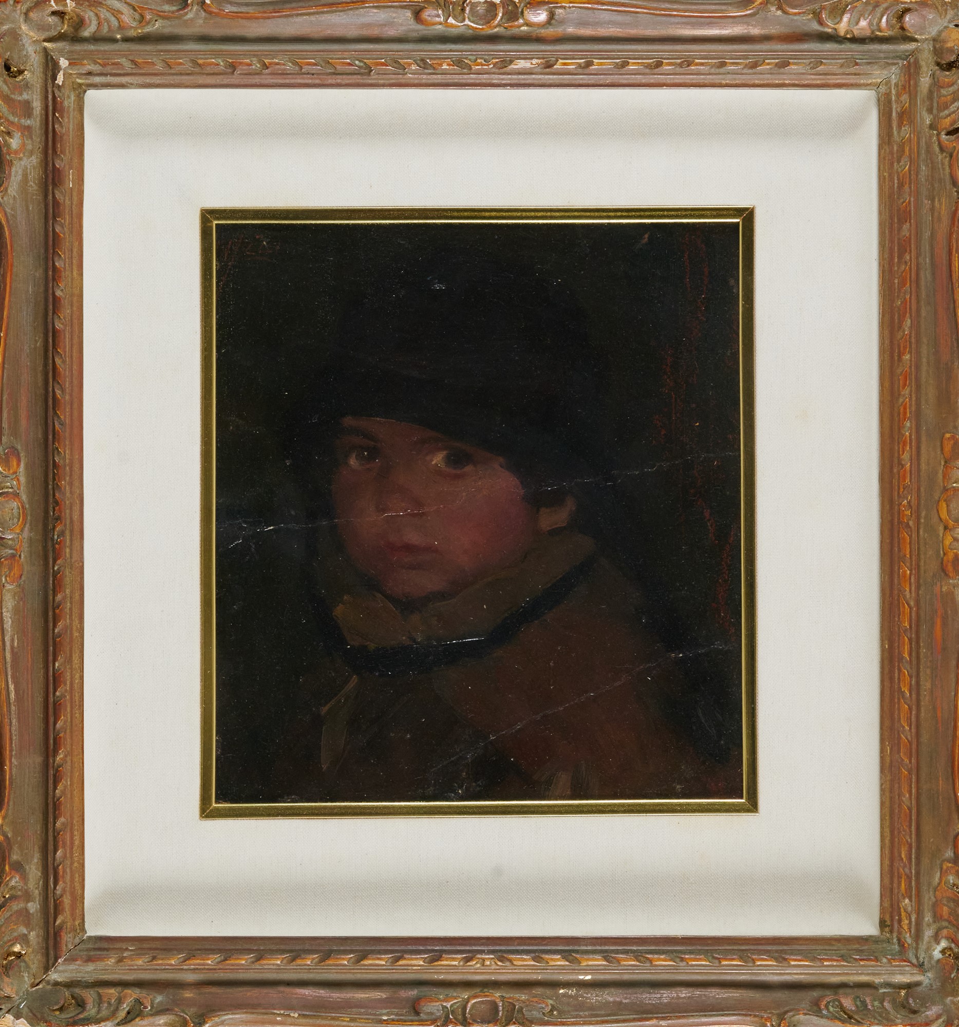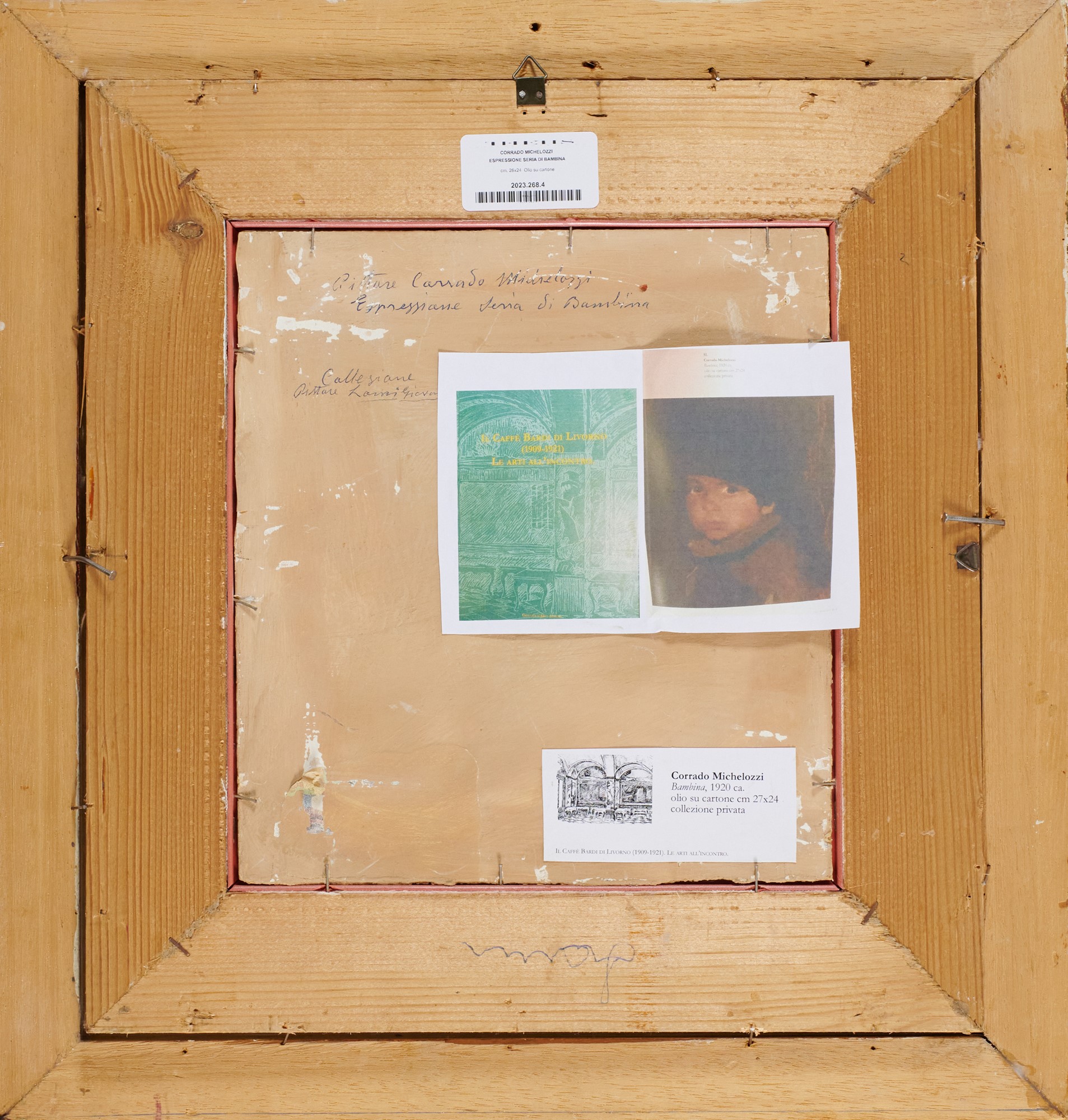 Corrado Michelozzi (Livorno, 1883 - 1965) Espressione seria di bambina Olio...