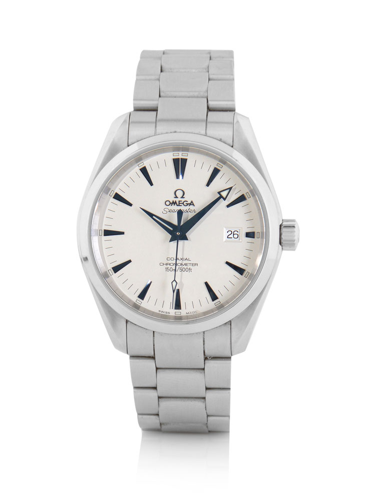 Cassa n. 8092977 in acciaio con oblò sul fondello a vite, vetri zaffiro (buono). Quadrante argentato con indici applicati, secondi al centro e data al 3 (ottimo). Movimento a carica automatica con scappamento coassiale e bilanciere-spirale senza racchetta (ottimo). Bracciale in acciaio. Quadrante, cassa, movimento e bracciale firmati.