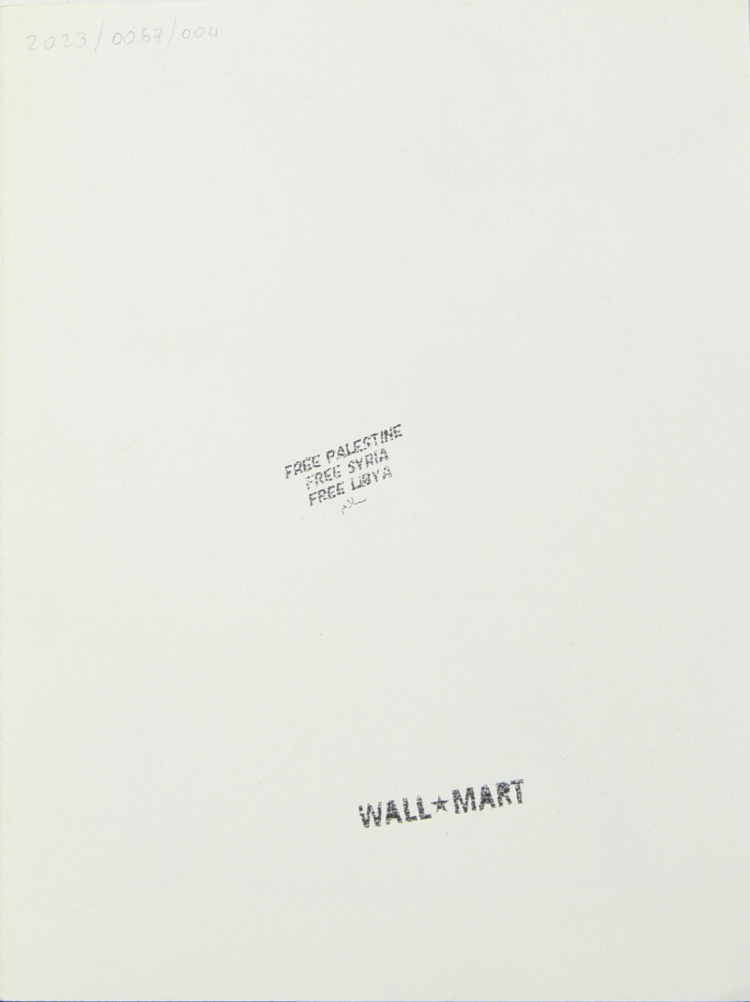 sul retro: timbro Wall Mart e timbro Free Palestine Free Syria Free Libya