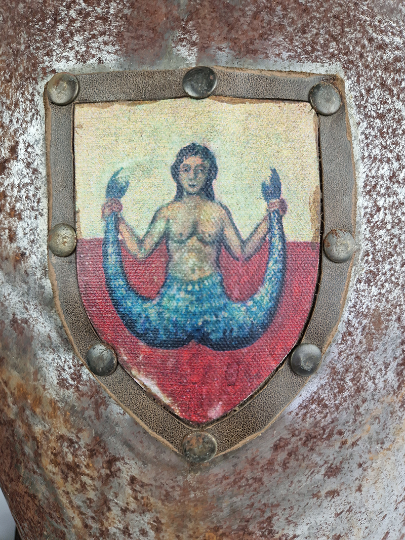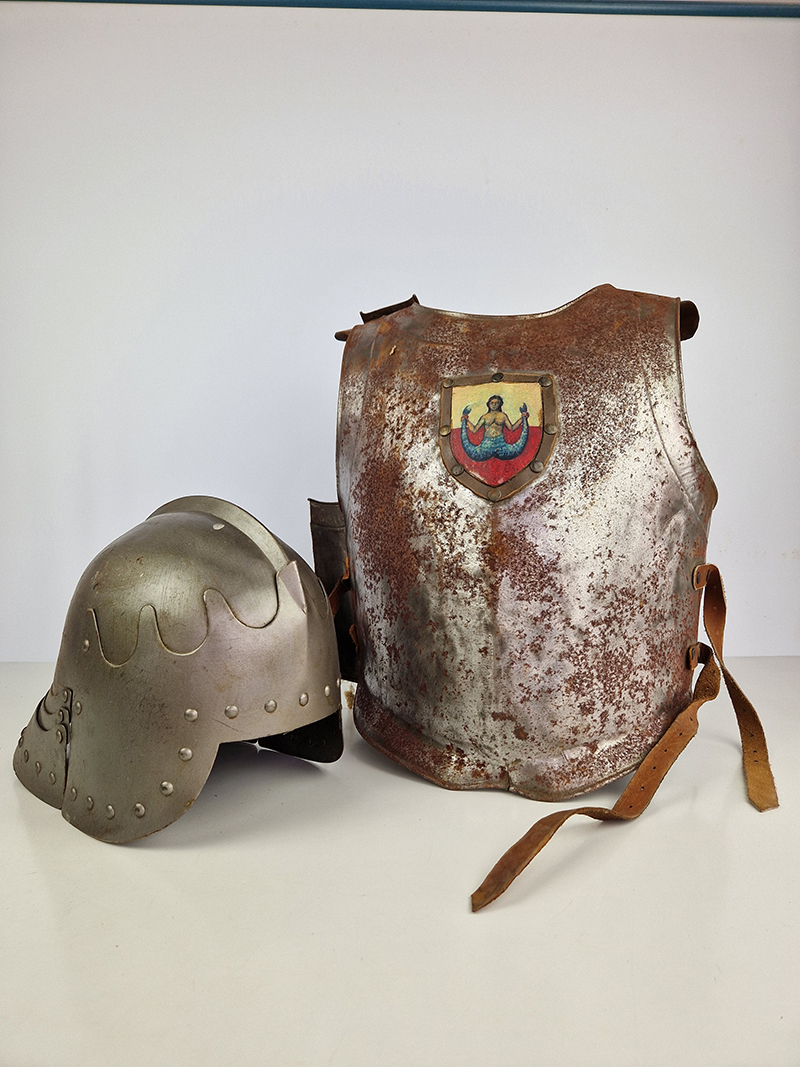 Lotto unico composto da un corpetto raffigurante stemma nella parte frontale ed un elmetto in metallo e pelle