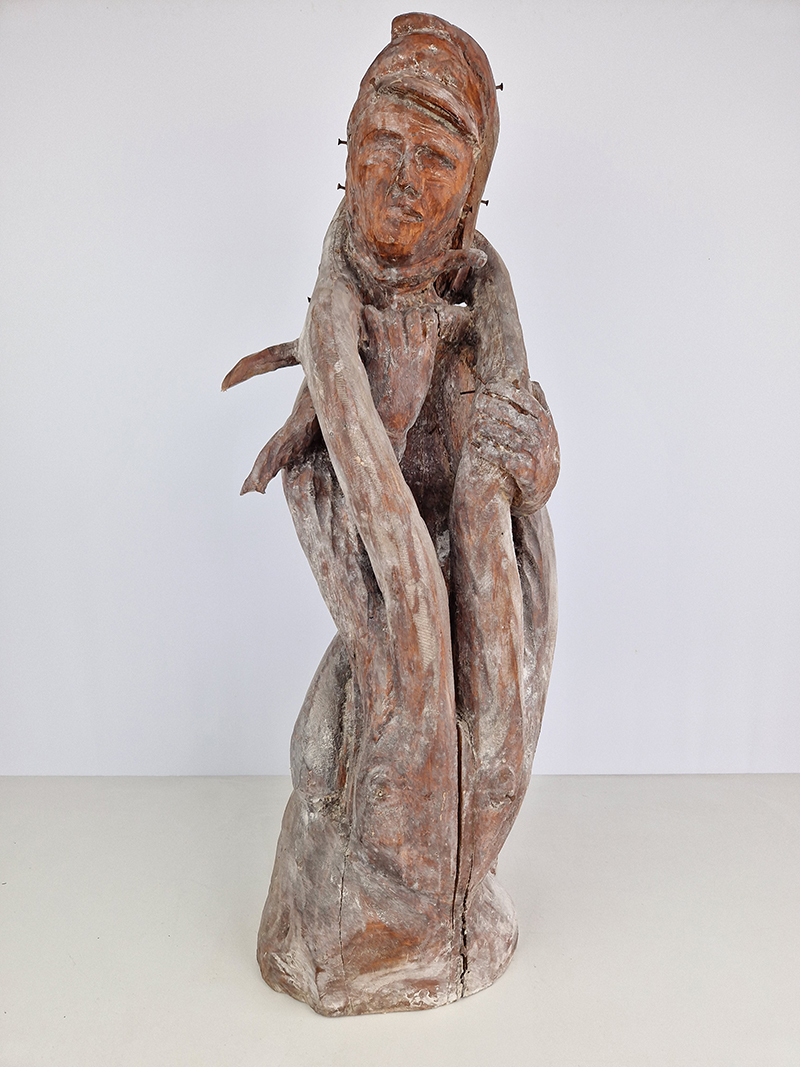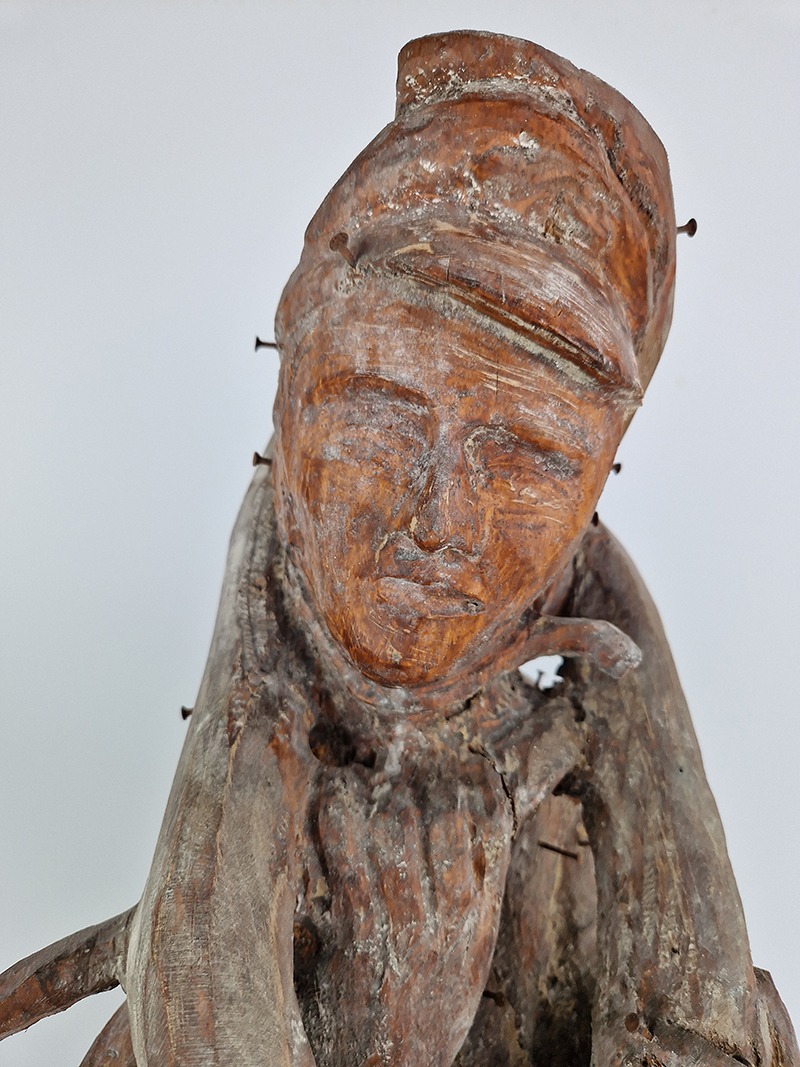 Realizzato in legno e raffigurante personaggio avvolto da animale mitologico, bozzetto per opera