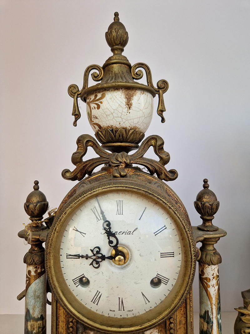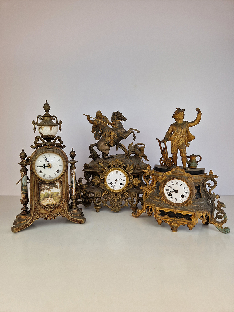 Lotto unico composto da n.3 orologi da tavolo in metallo sbalzato, finemente lavorati