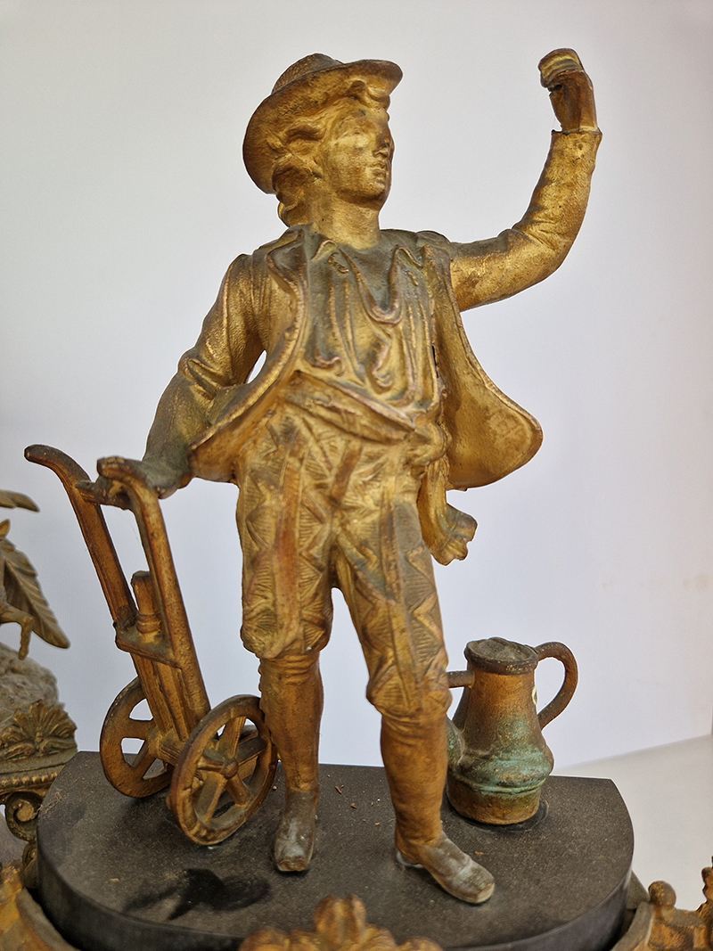 Dimensioni 40cm (h) x 30cm x 12cm (orologio con figura maschile). Presenta difetti