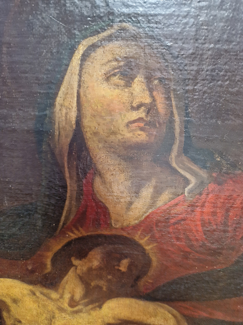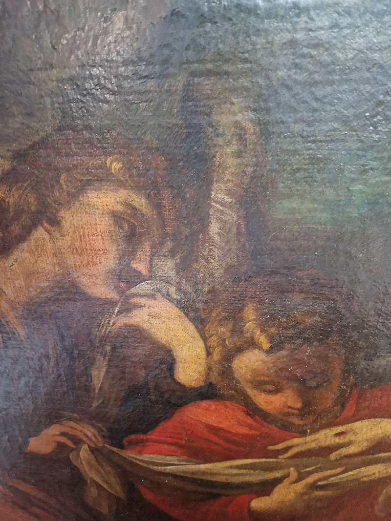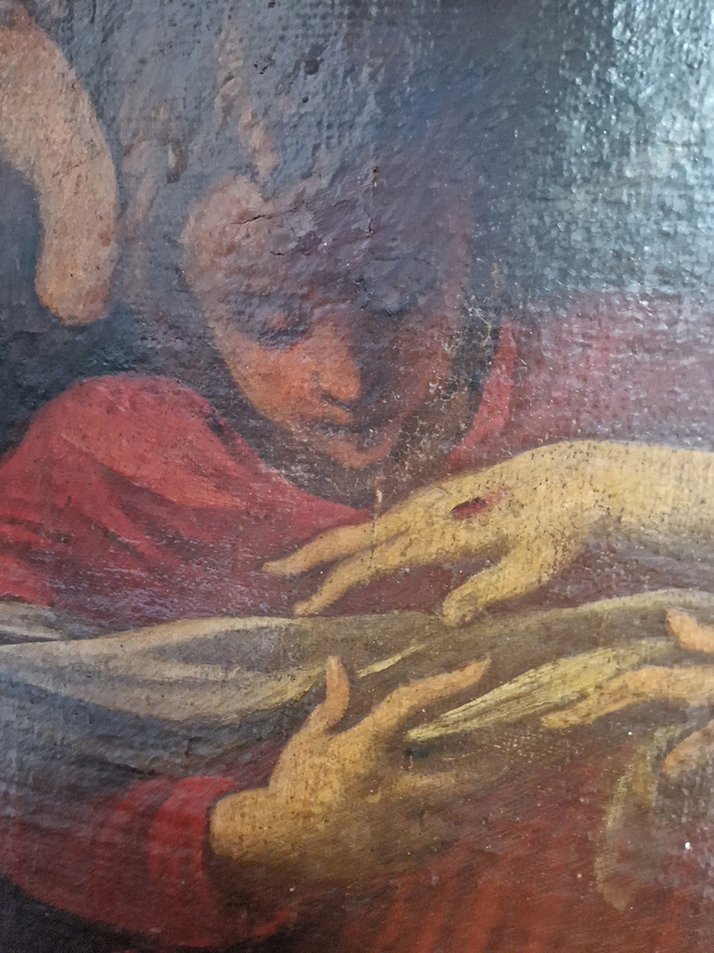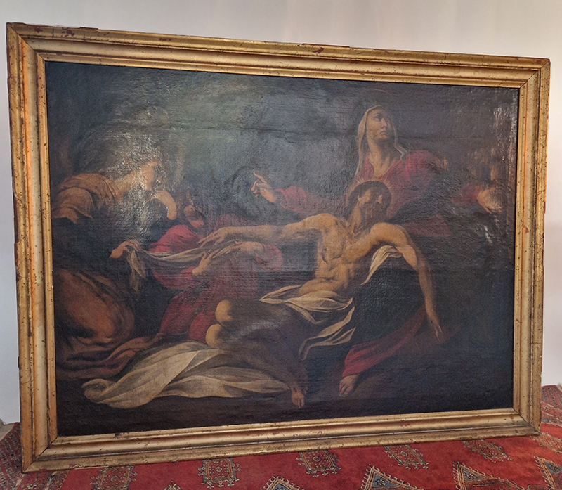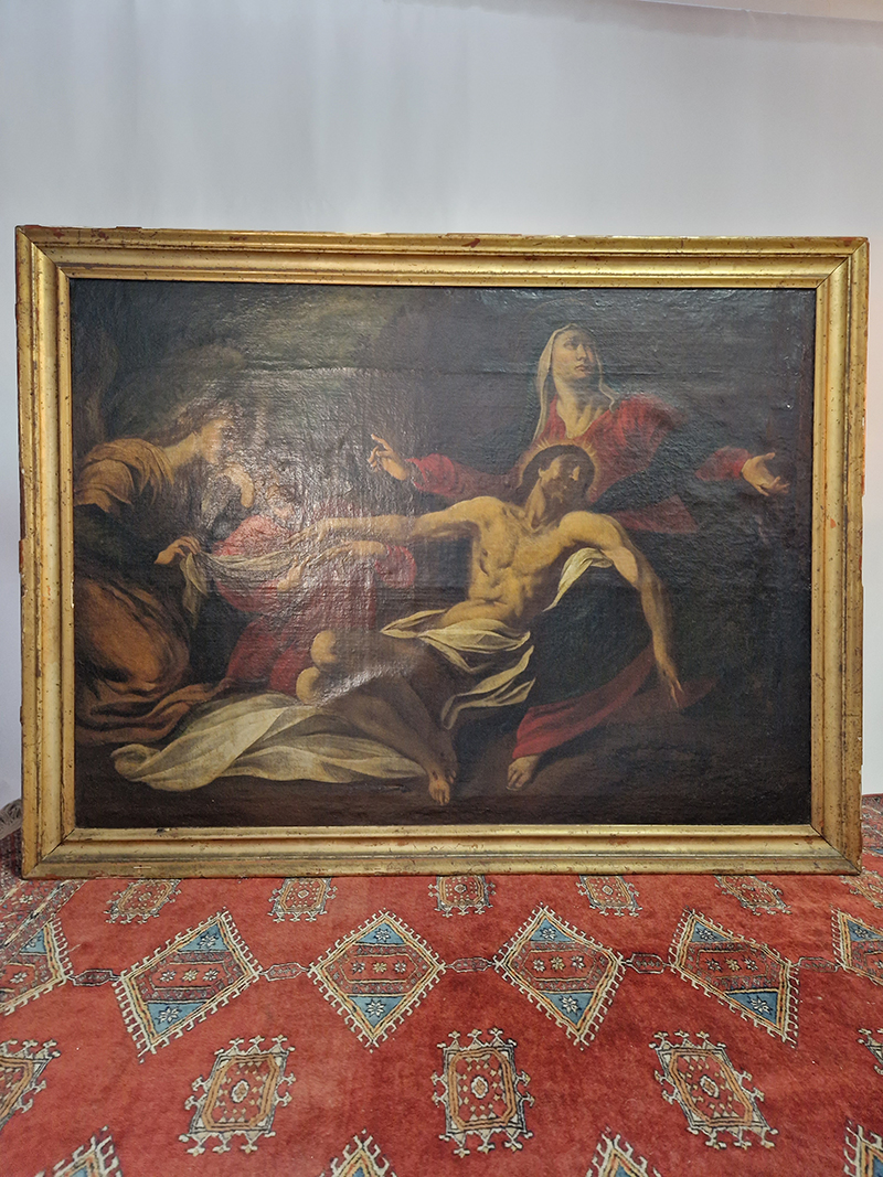 Olio su tela in cornice coeva raffigurante scena religiosa scuola genovese