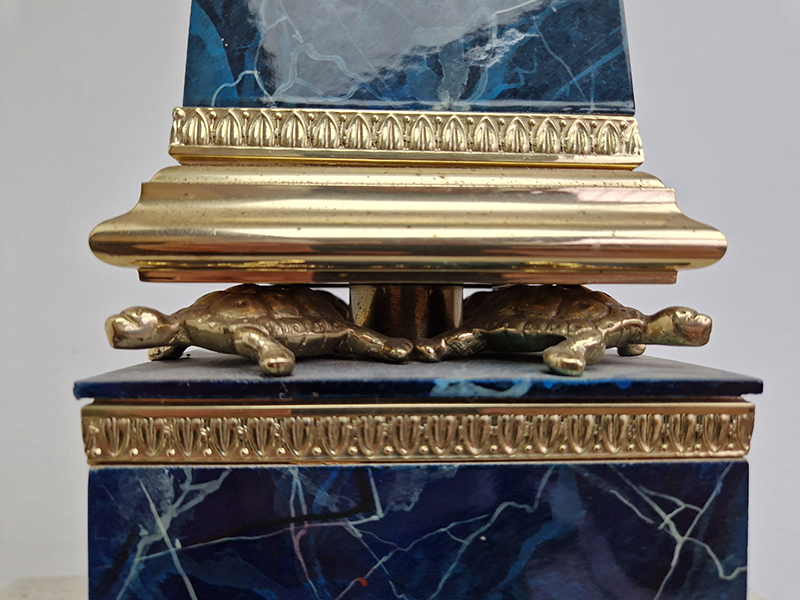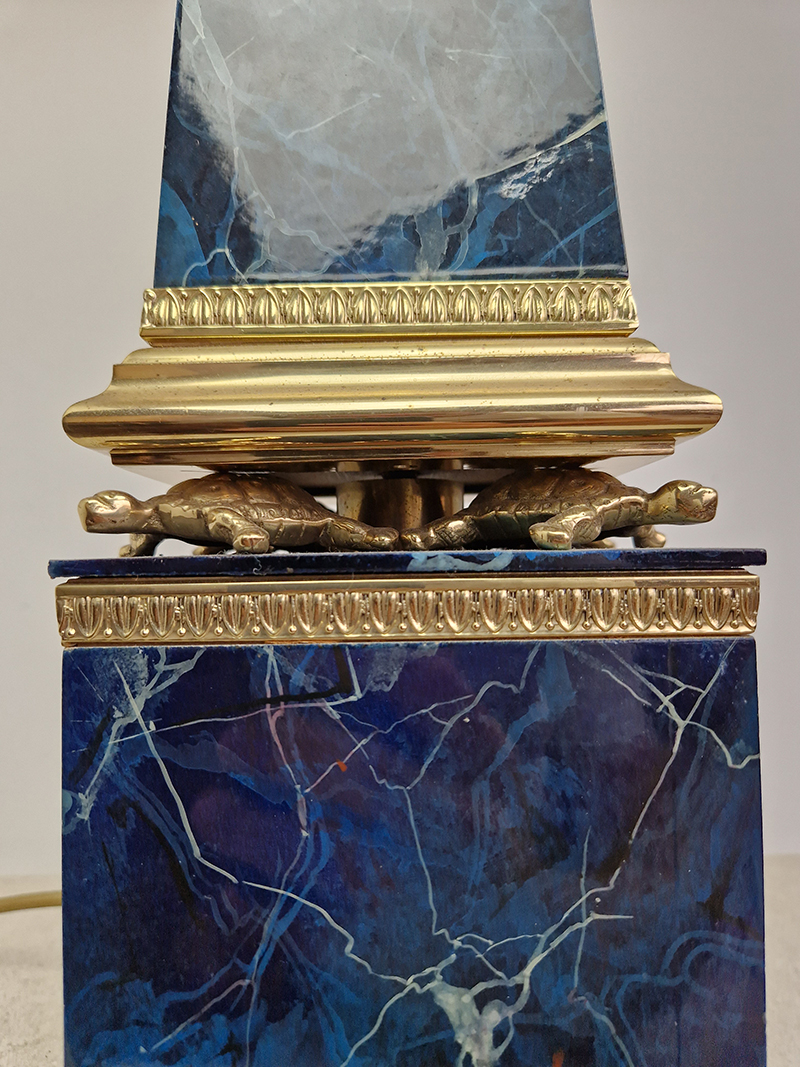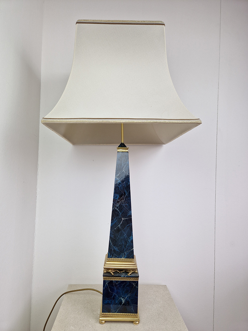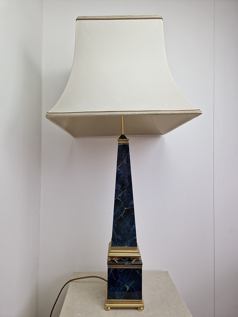 Obelismo marmorizzato montato a lampada, dotato di paralume