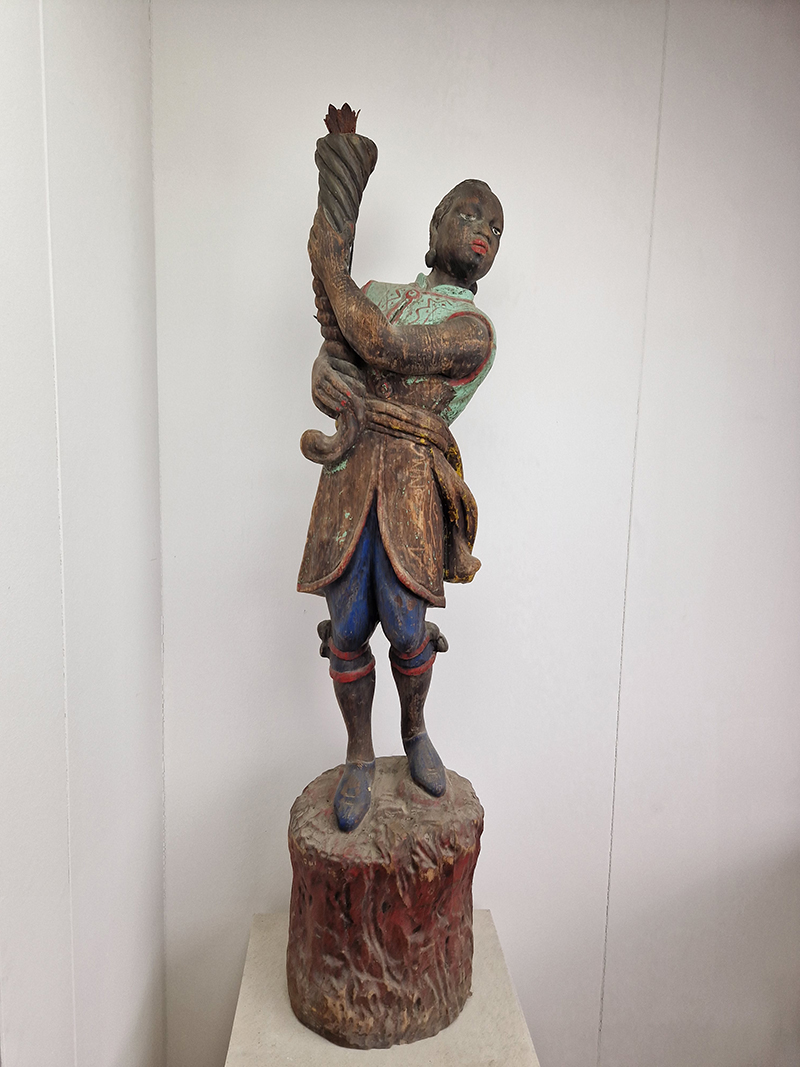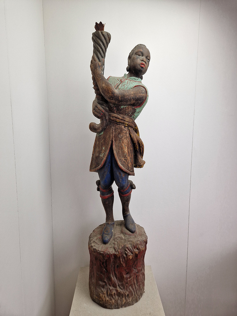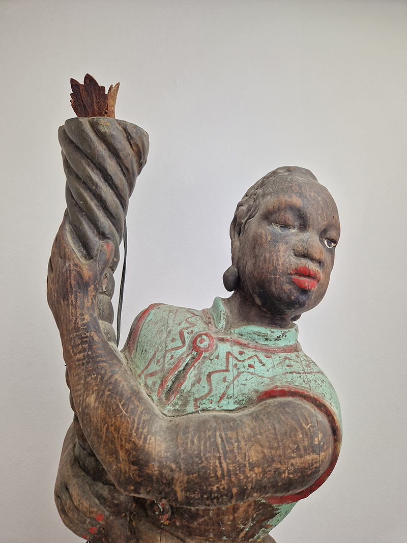 Raffigurante Moro con Cornucopia, base in legno lavorato