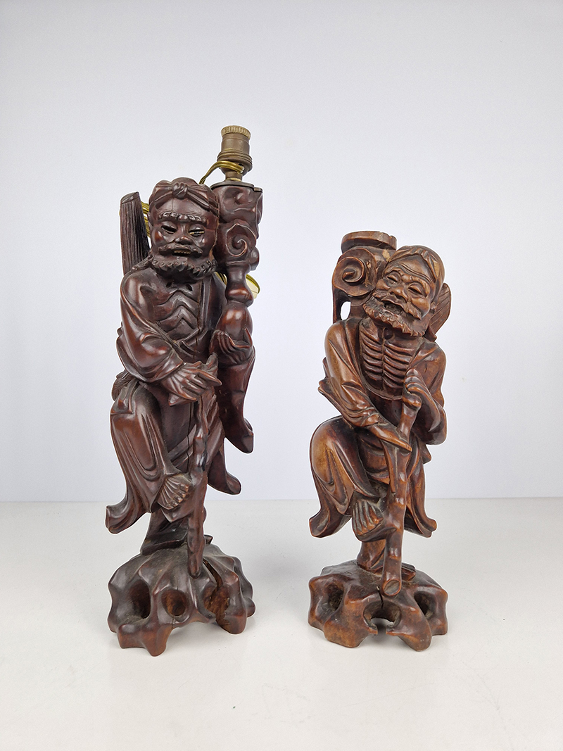 Lotto unico composto da n.2 sculture realizzate in legno scolpito raffiguranti personaggi orientali
