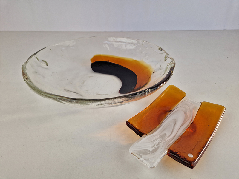Lotto unico composto da una coppia di posaceneri in vetro firmati Murrina
