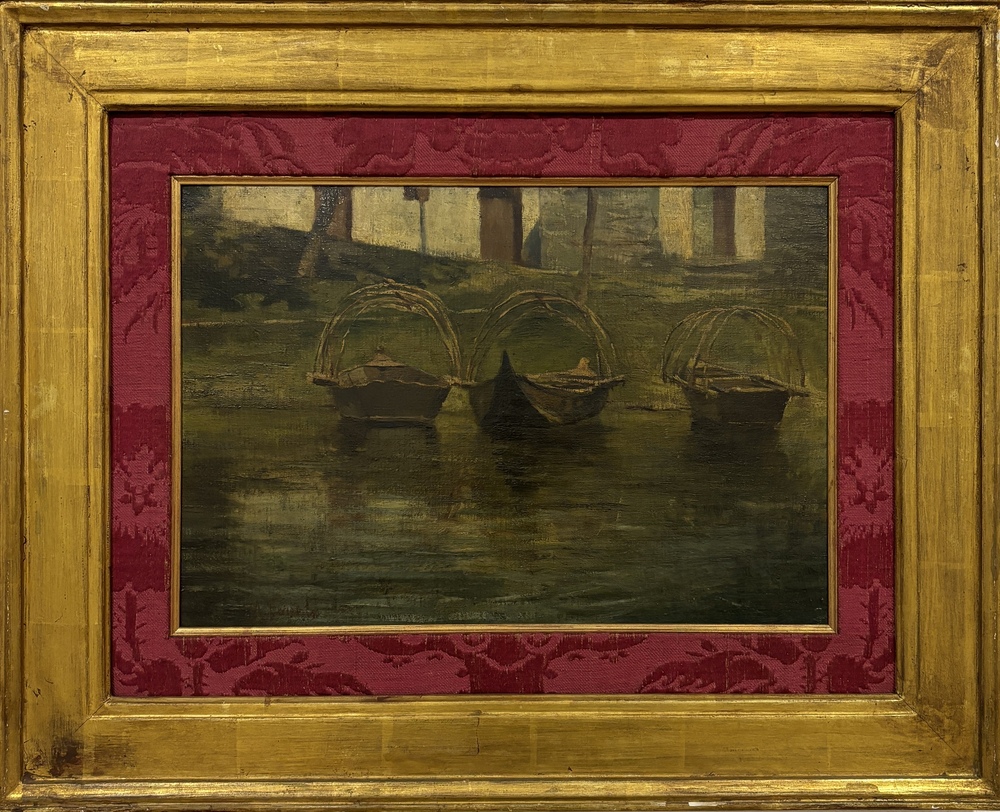 Achille Formis Befani Napoli 1832 - Milano 1906 Veduta lacustre Olio su cartone cm 28,5x42