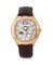 Cassa in oro rosa 18 kt con oblò sul fondello chiuso da viti, vetri zaffiro (ottimo). Quadrante in oro argentato con indici applicati, secondi al 4, contatore per secondo fuso orario con divisione giorno/notte all'8, data panoramica al 12 (come nuovo). Movimento a carica automatica cal. 850P con due bariletti (ottimo) Quadrante, cassa e movimento firmati. Completo di cinturino, fibbia deployante in oro rosa, astuccio e certificato del 12/2009.
