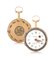 Diam. mm 41. C. openface, 18K yellow gold, applied decorations with stone and green enamel (good). D. white enamel with Roman and Arabic numerals (original, small chip at hole winding). M. verge escapement, key winding (good). Dial and movement signed.
