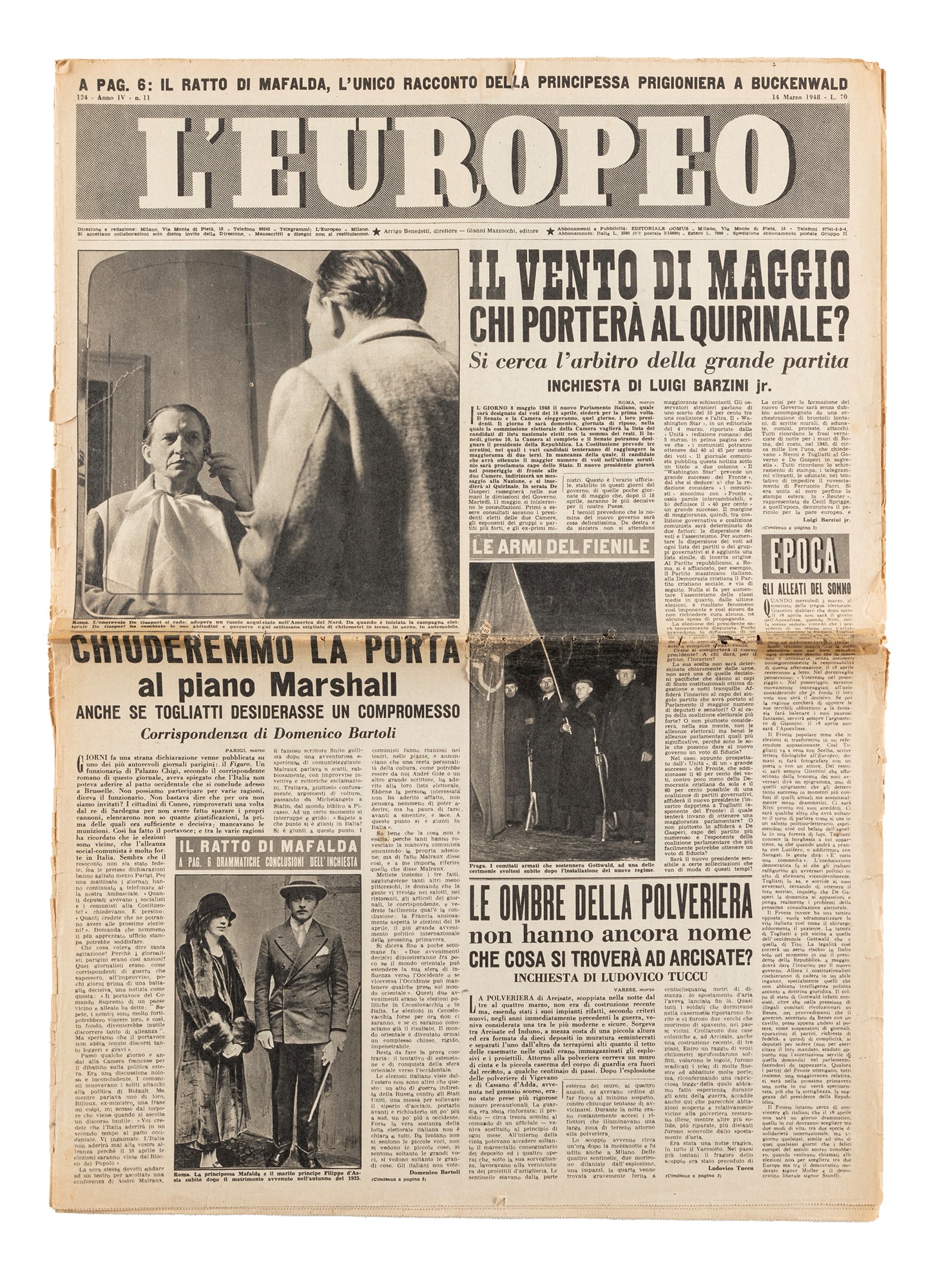 Opera accompagnata da Giornale L'Europea, 14 Marzo 1948
