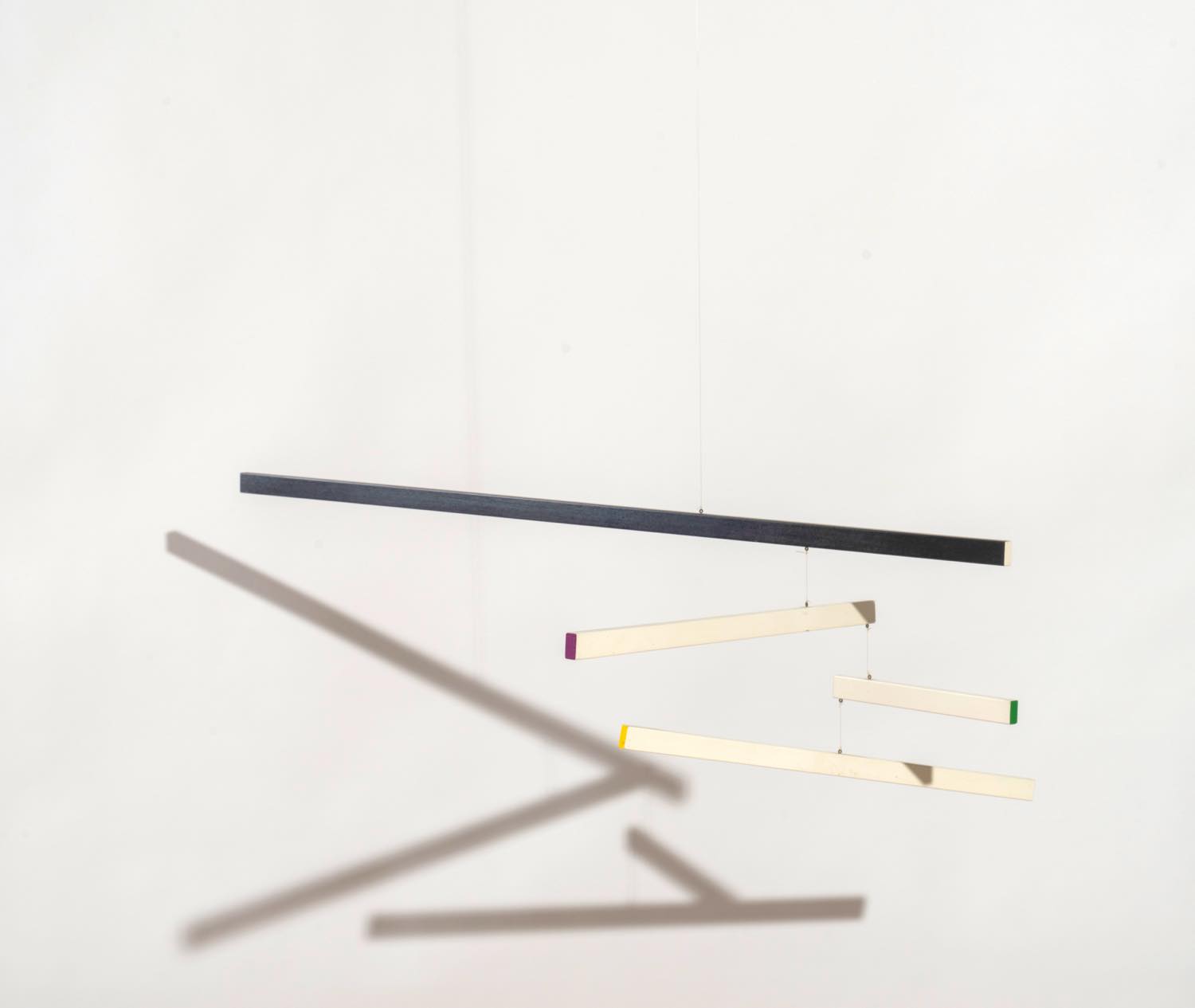 Bruno Munari (Milano 1907 - 1998), “Macchina Inutile”, 1993.Scultura in legno verniciato, reca nell’elemento inferiore firma, H cm 25 (filo escluso). - Provenienza: Collezione privata.