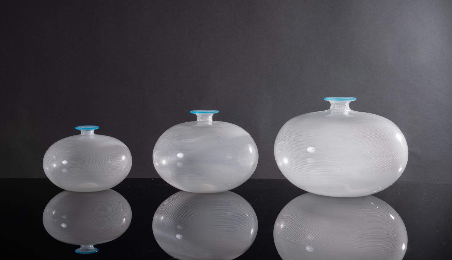 Barovier & Toso, Tre vasi in vetro “Filigrane”, Murano, Anni ‘80.