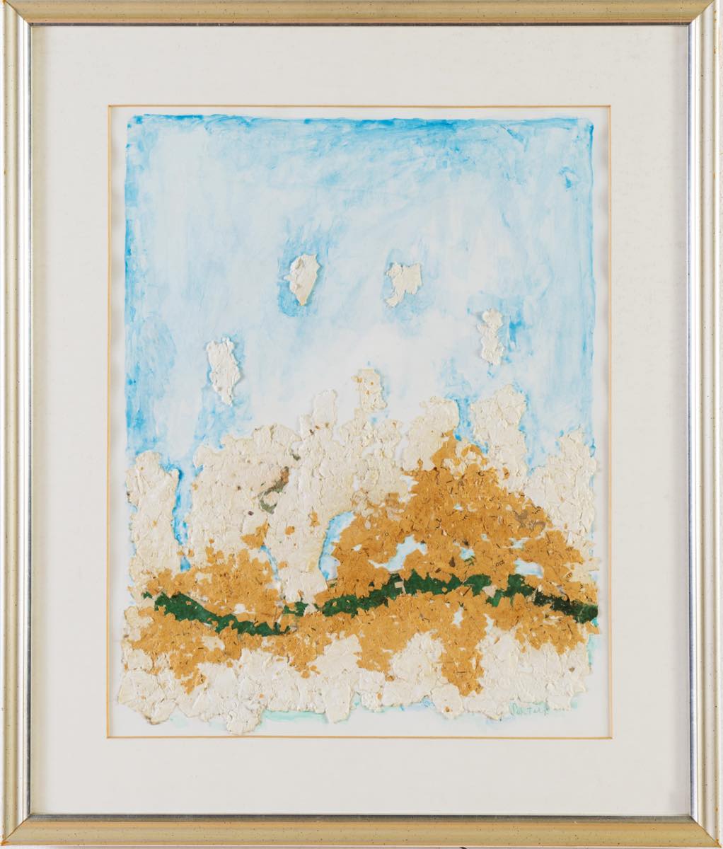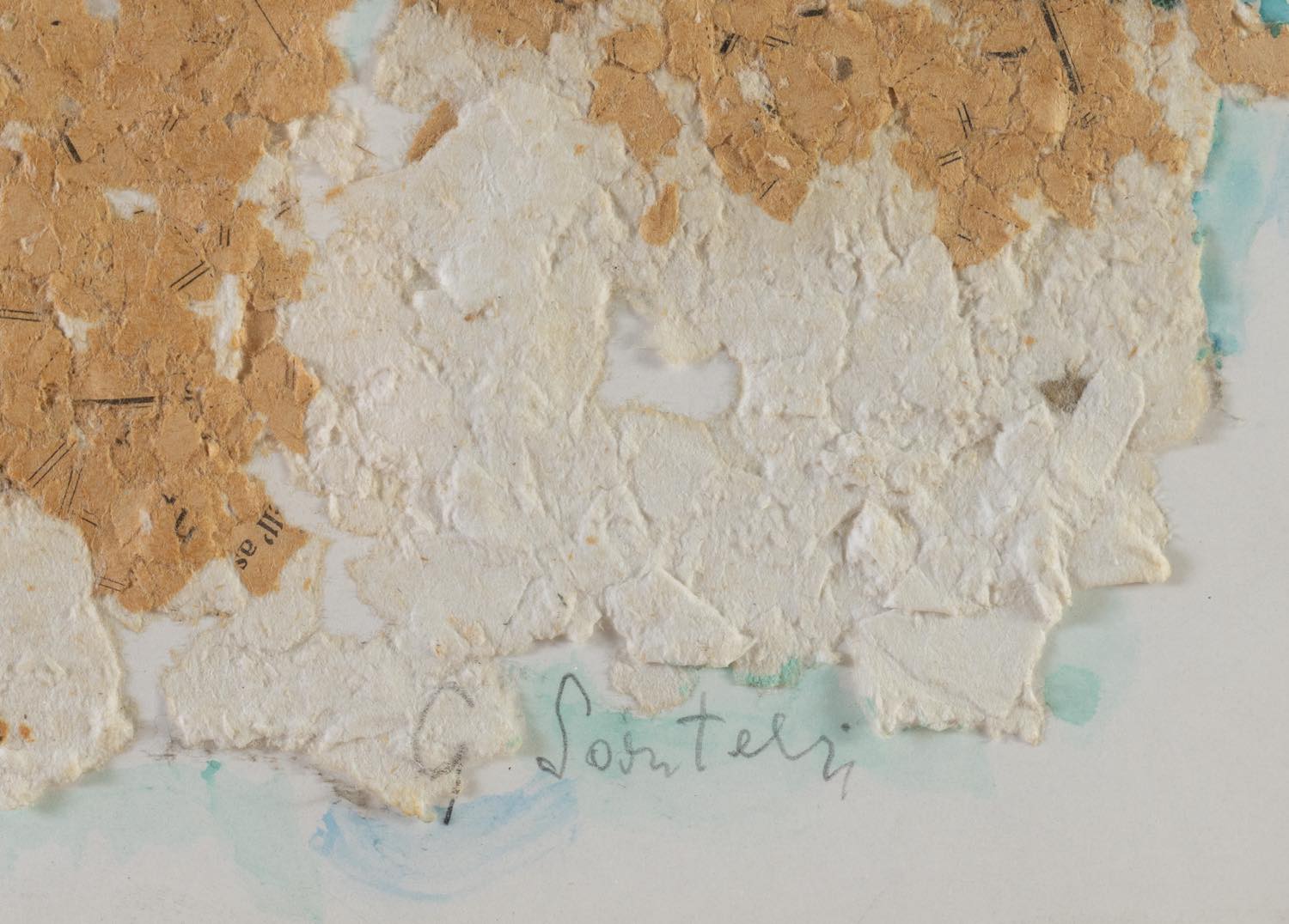 Germano Sartelli (Imola 1925 - 2014), “Paesaggio”, 1988.Collage e tecnica mista su carta, firmato “G Sartelli” in basso a destra, reca al retro etichetta della Galleria De Foscherari - Bologna, H cm 53x43. - Provenienza: Collezione privata; Galleria De Foscherari - Bologna.