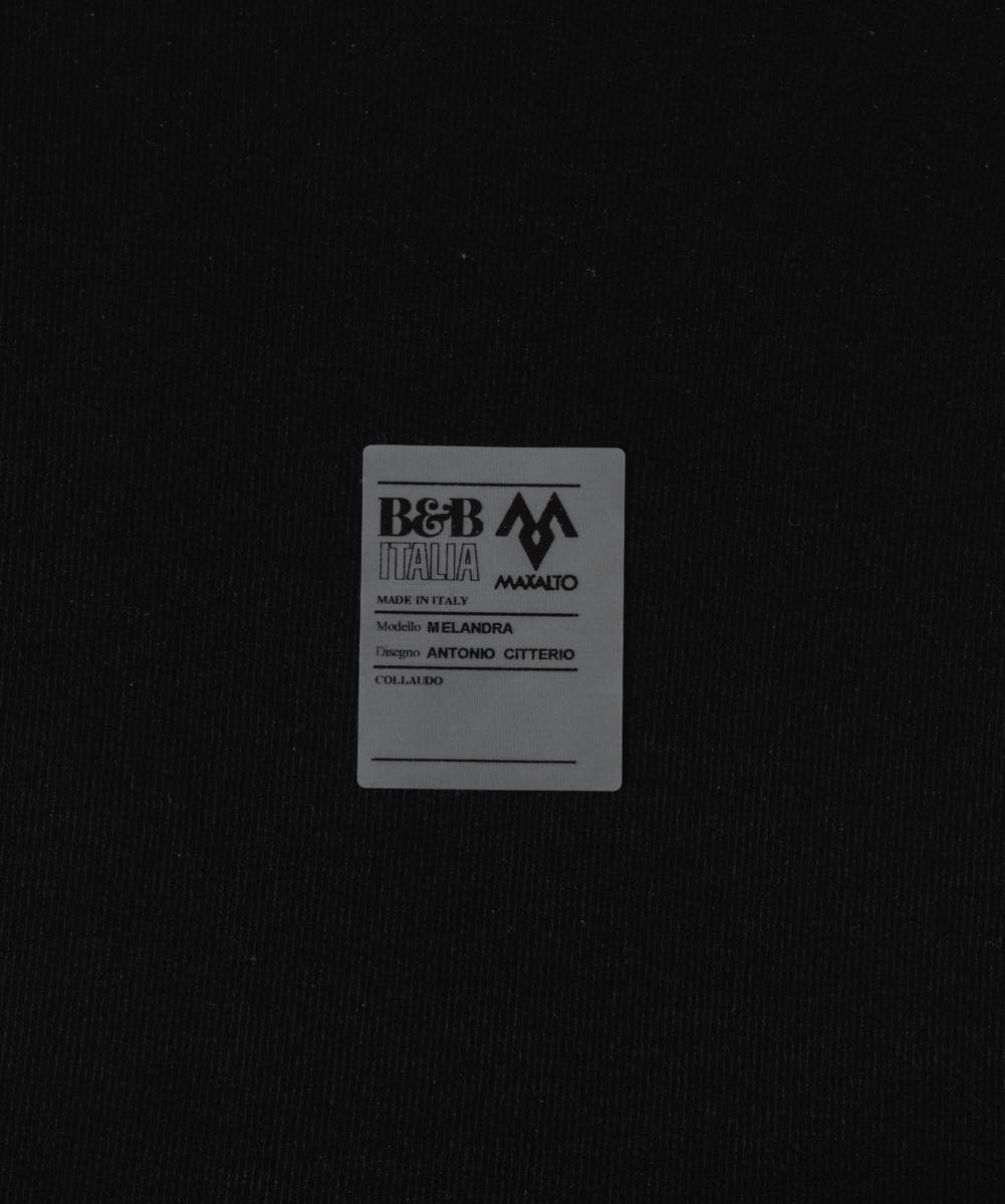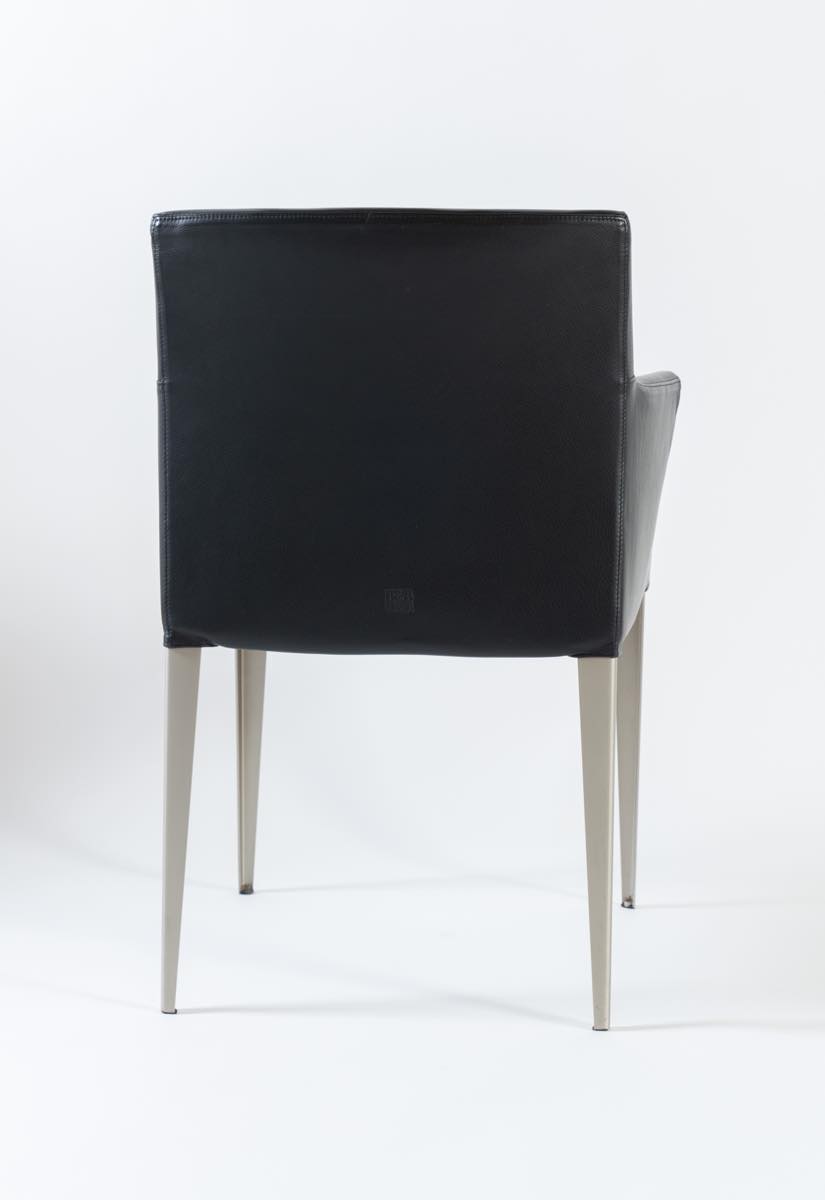Antonio Citterio per B&B Italia, Poltrona con braccioli “Melandra”, Milano, Anni ‘90.Struttura in tubolari e profilati d’acciaio, gambe in lamiera di acciaio verniciato e nichelato, seduta e schienale imbottiti rivestiti in pelle nera, schienale flessibile, presenta etichetta della produzione, H cm 82x48x48, H seduta cm 47 (lievi usure)