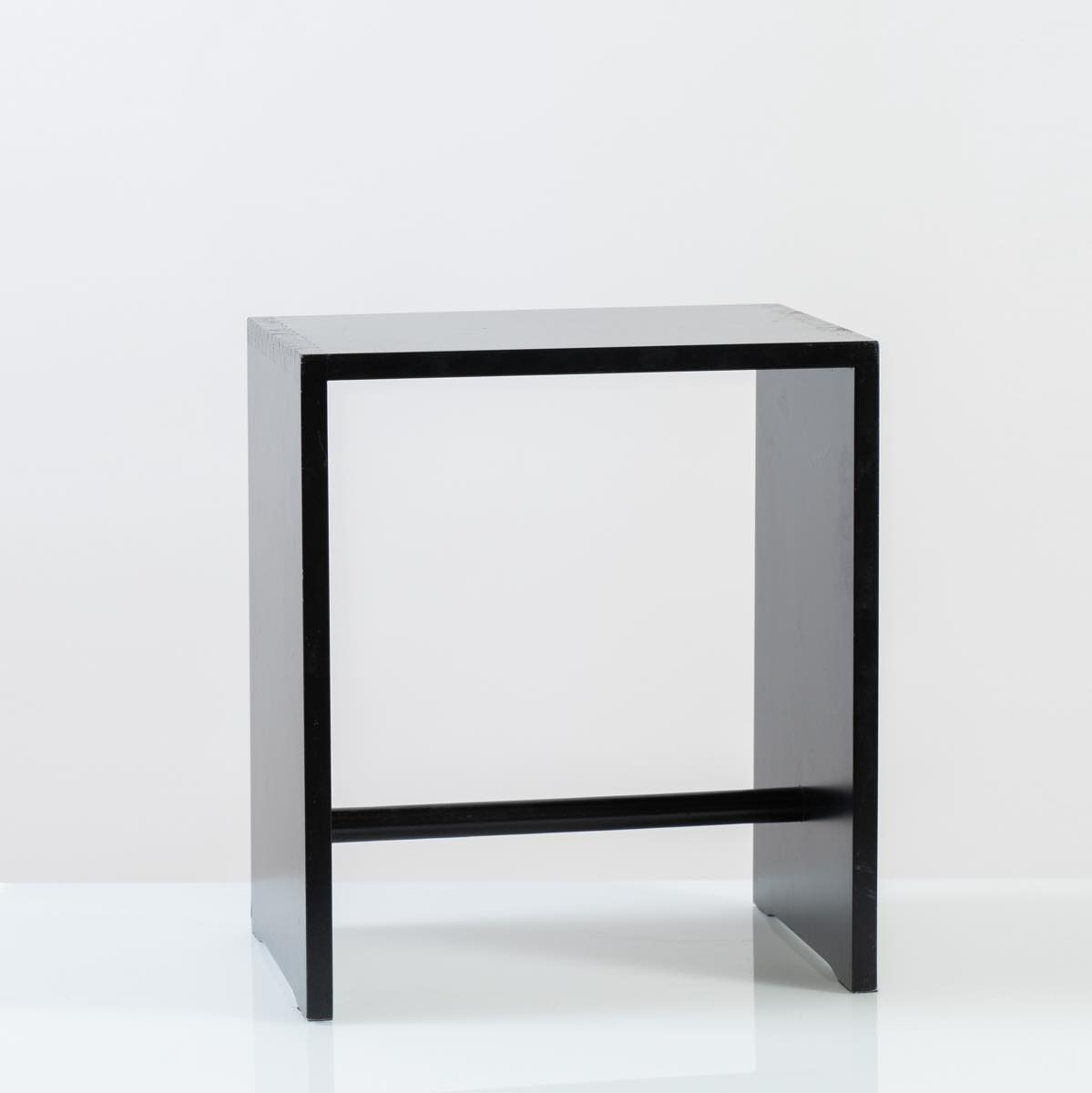 Max Bill per Zanotta, Tavolino/sgabello “Sgabillo”, Anni ‘70.In legno di rovere tinto nero, reca sotto il piano firma a fuoco del designer e marchio della produzione, H cm 45x40x28 (usure)