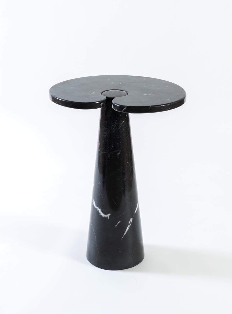 Angelo Mangiarotti per Skipper, attribuito a, Tavolino serie “Eros”, fine del XX secolo.In marmo nero Marquinia, piano circolare sagomato a incasso su base tronco-conica, H cm 72.5x55x46