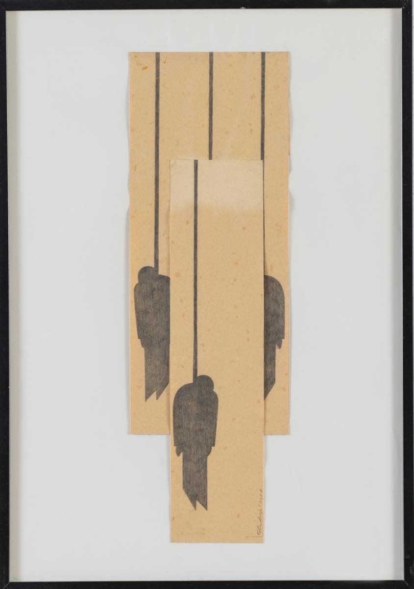 Felice Levini (Roma 1956), “Senza titolo”, 1987.Tecnica mista collage su carta, firmato e datato in basso al centro, Foglio H cm 50x35 (lievi difetti). - Provenienza: Collezione privata.