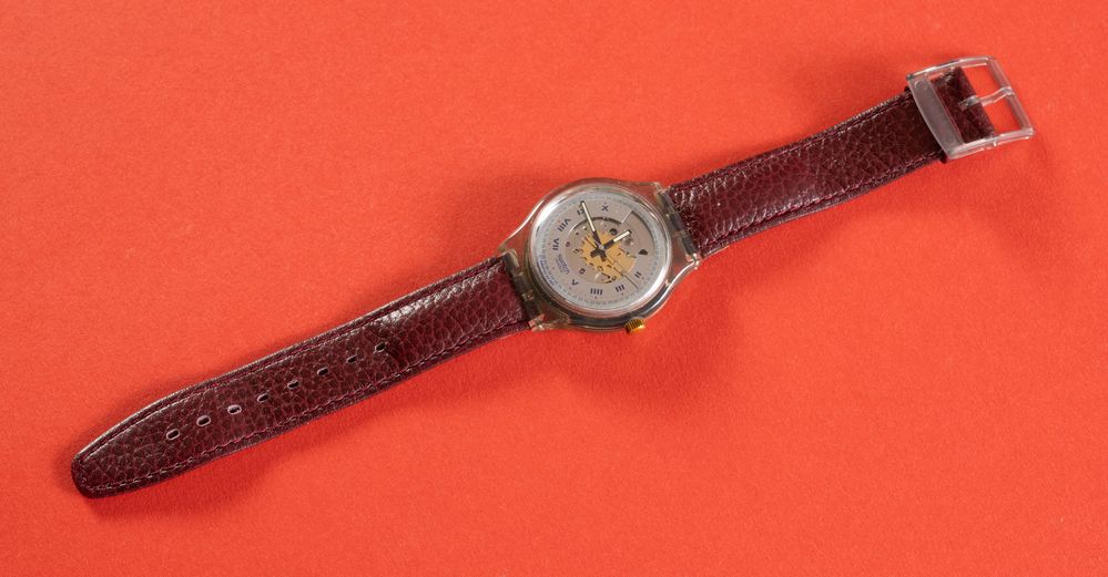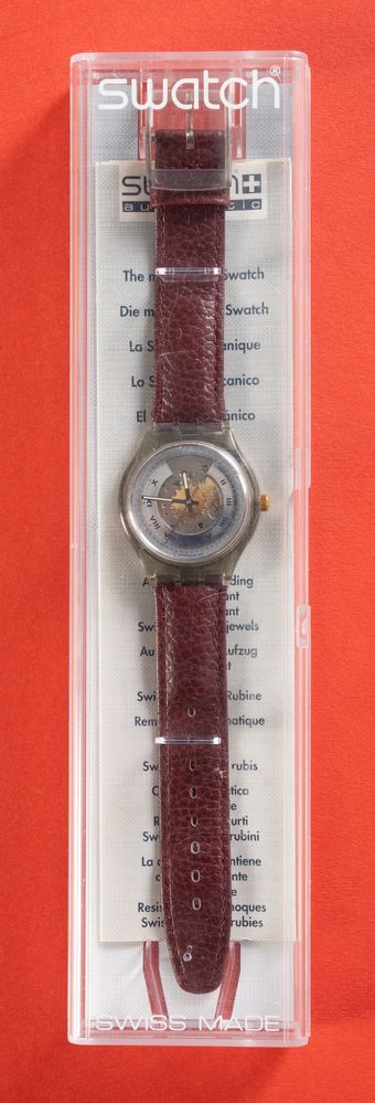 SWATCH AUTOMATICO RUBIN - SAM100 1991. Cassa in plastica, cinturino in pelle,...