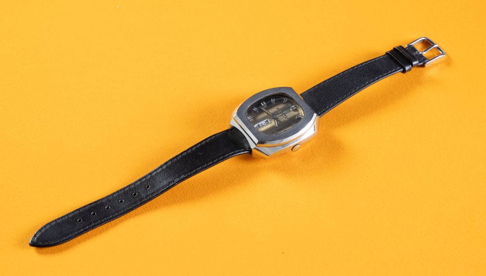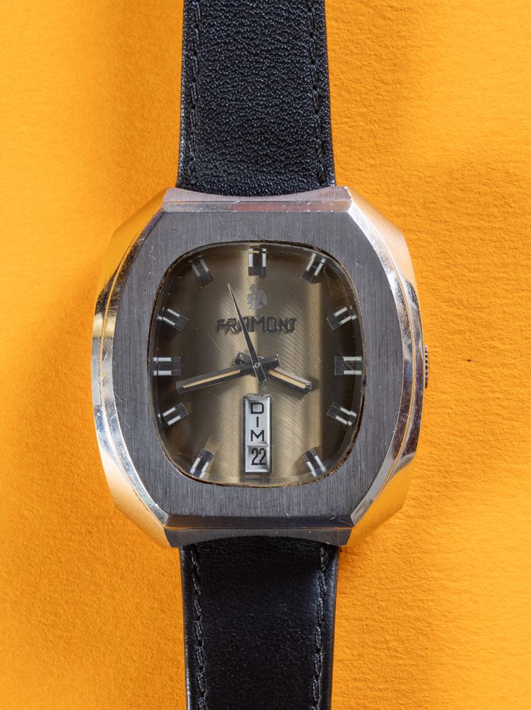 FRAMONT TONNEAU, anni '70. Cassa tonneau in acciaio, quadrante bronzo, indici...