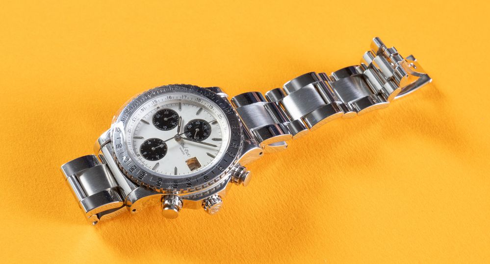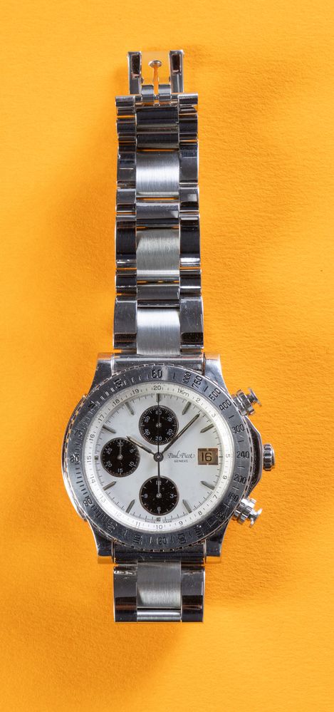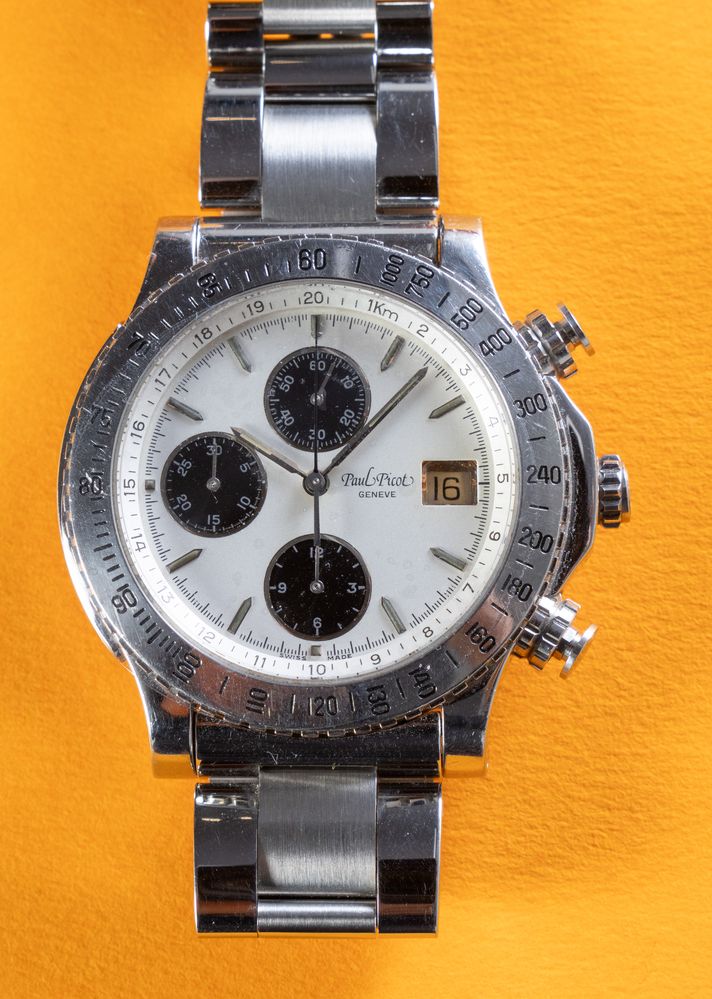 PAUL PICOT CRONOGRAFO, anni '90. Cassa rotonda in acciaio, quadrante argento...