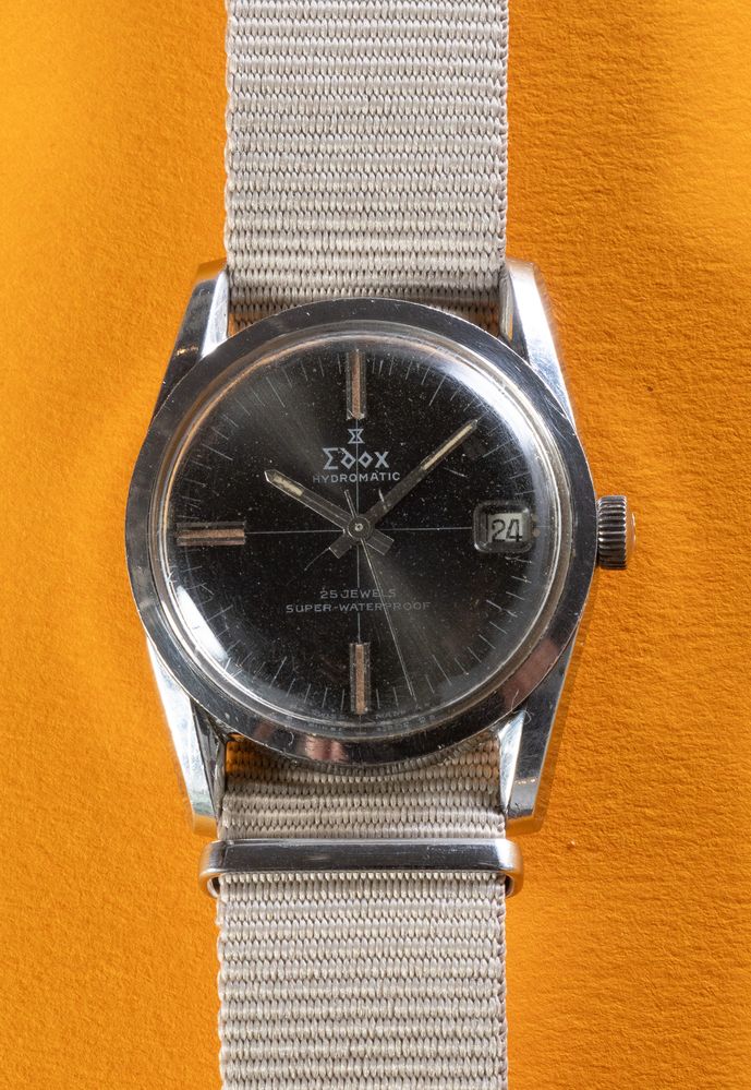 EDOX HYDROMATIC WATERPROOF, anni '70. Cassa rotonda in acciaio, quadrante...