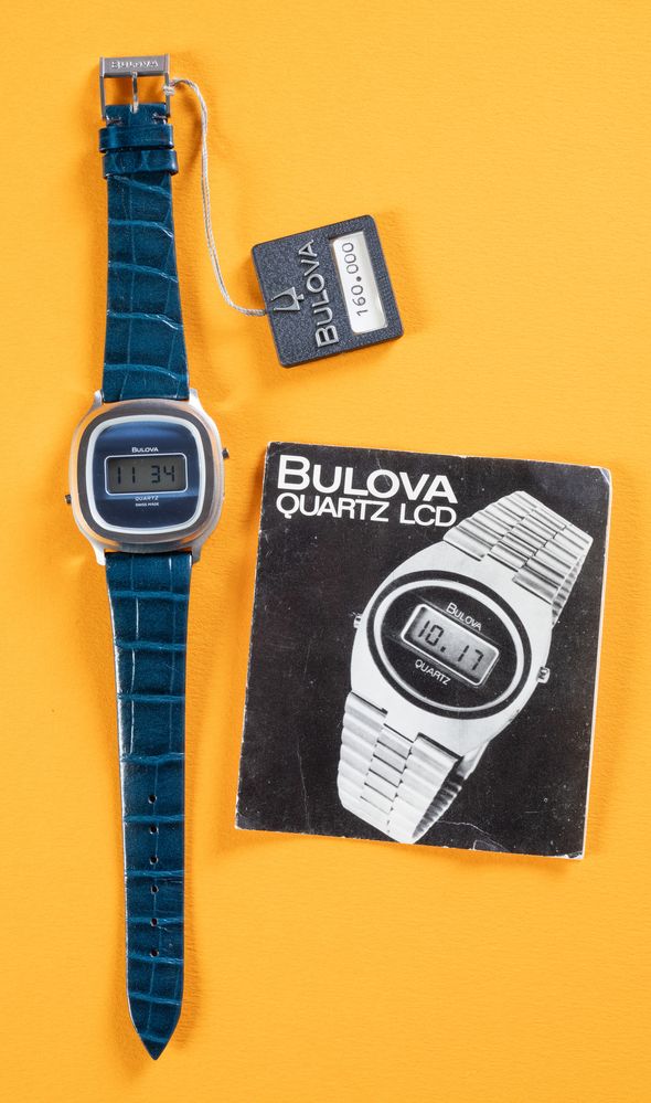 BULOVA LCD, anni '80. Cassa a cuscino in acciaio, quadrante blu, display...