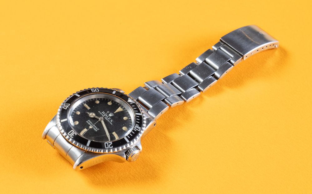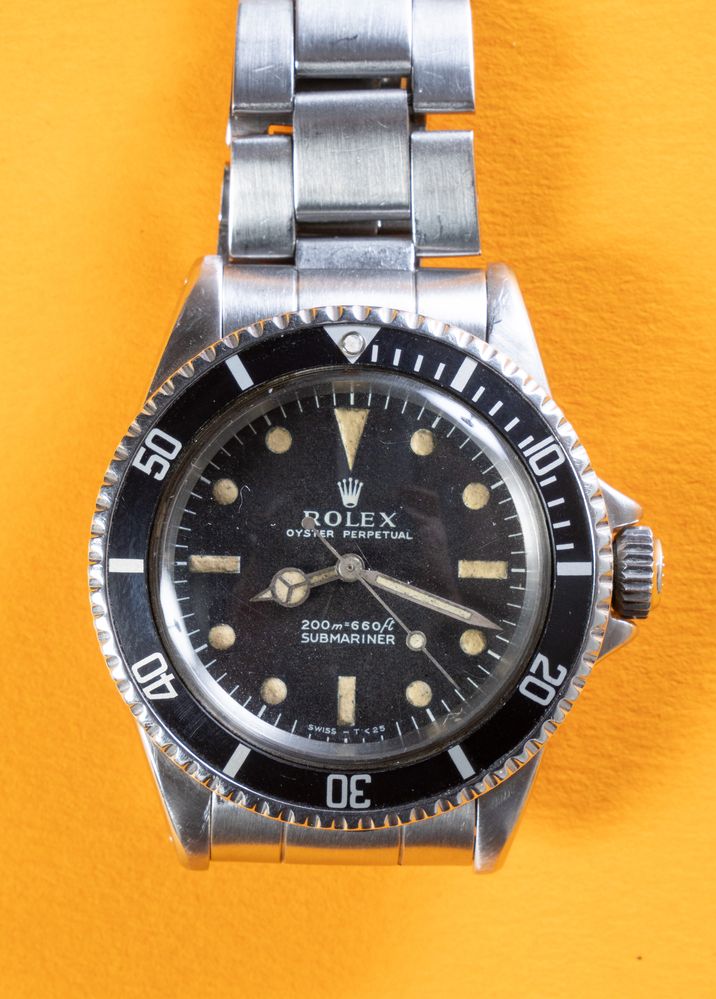 ROLEX SUBMARINER 5513 METER FIRST, anni '70. SERIALE 2.6 M. Cassa rotonda in acciaio, quadrante nero con indici luminosi a pallettoni, movimento a carica automatica 1520, corona logata, bracciale Rolex 7836 modello Oyster. Scatola Rolex. Diametro 40mm.