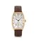 Cassa tonneau in oro rosa 18 kt con vetro zaffiro curvato (ottimo). Quadrante argentato con numeri arabi smaltati, secondi al 6 e lancette per data al centro (ottimo). Movimento a carica automatica con rotore in platino (ottimo). Quadrante, cassa e movimento firmati. Cinturino e fibbia in oro rosa originali.