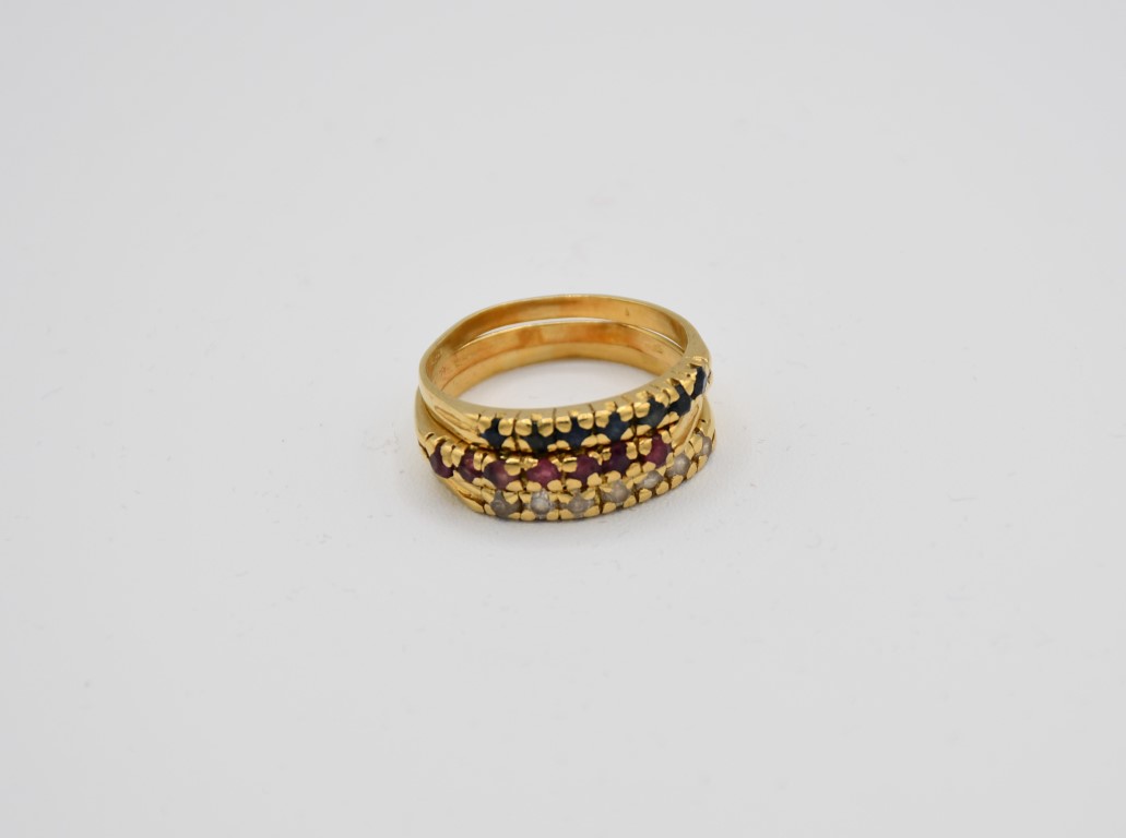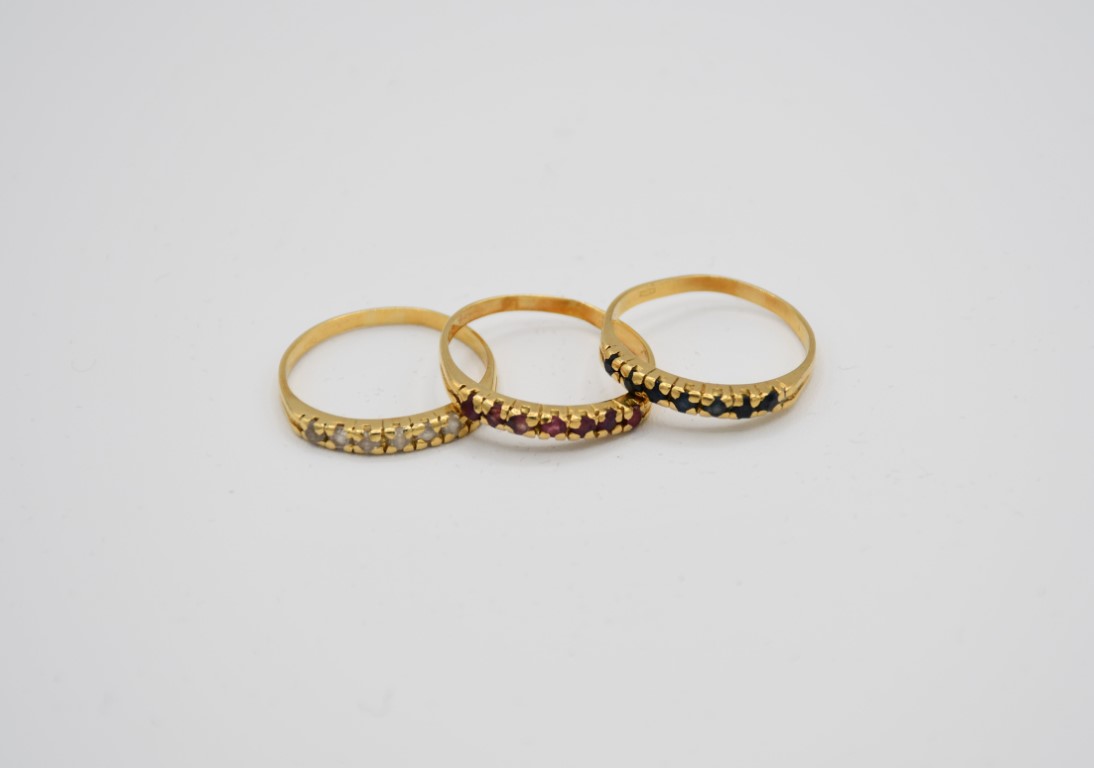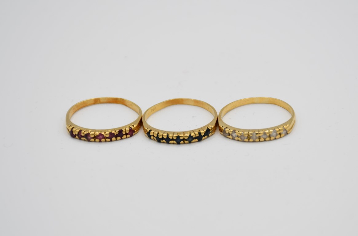 Tre anellini in oro con pietre simulanti