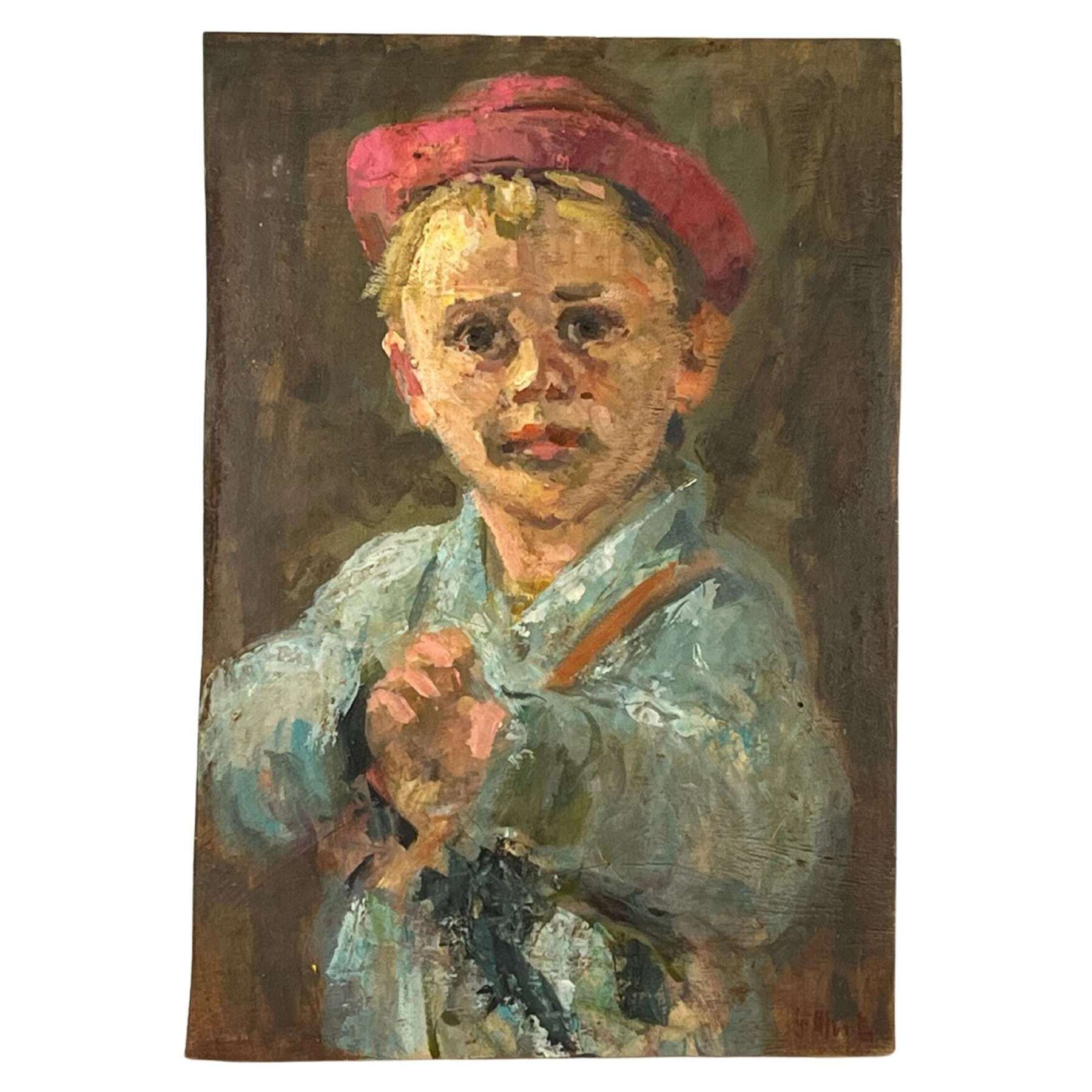 Dipinto olio su tavola, raffigurante Ritratto di Bambino. XX secolo. Artista anonimo.
