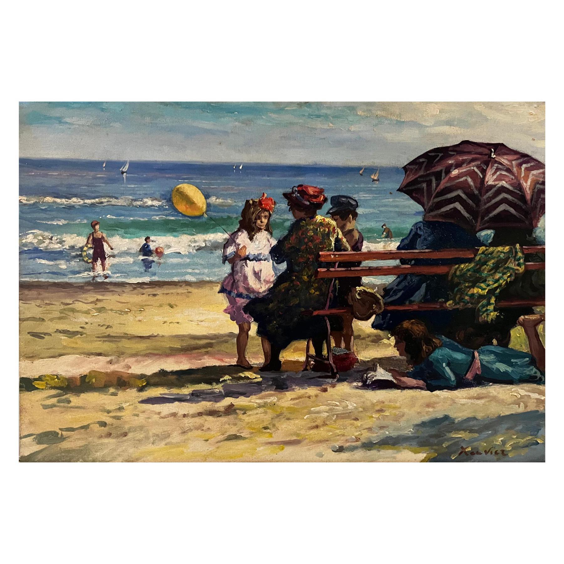 Lotto 87 | Dipinto olio su tavola, raffigurante Giornata al mare, periodo XX secolo....