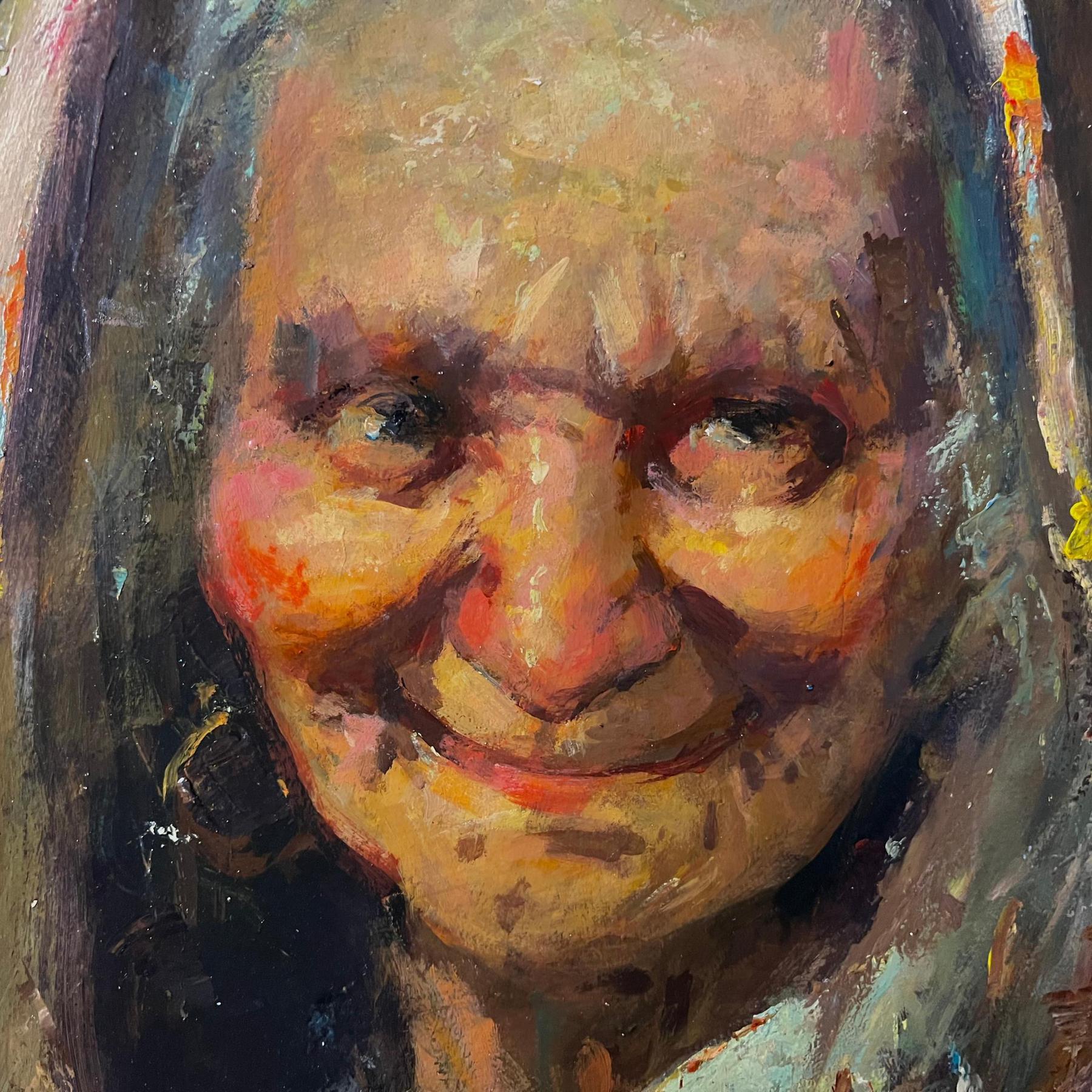 Lotto 89 | Dipinto olio su tavola raffigurante Ritratto di anziana donna. XX secolo....
