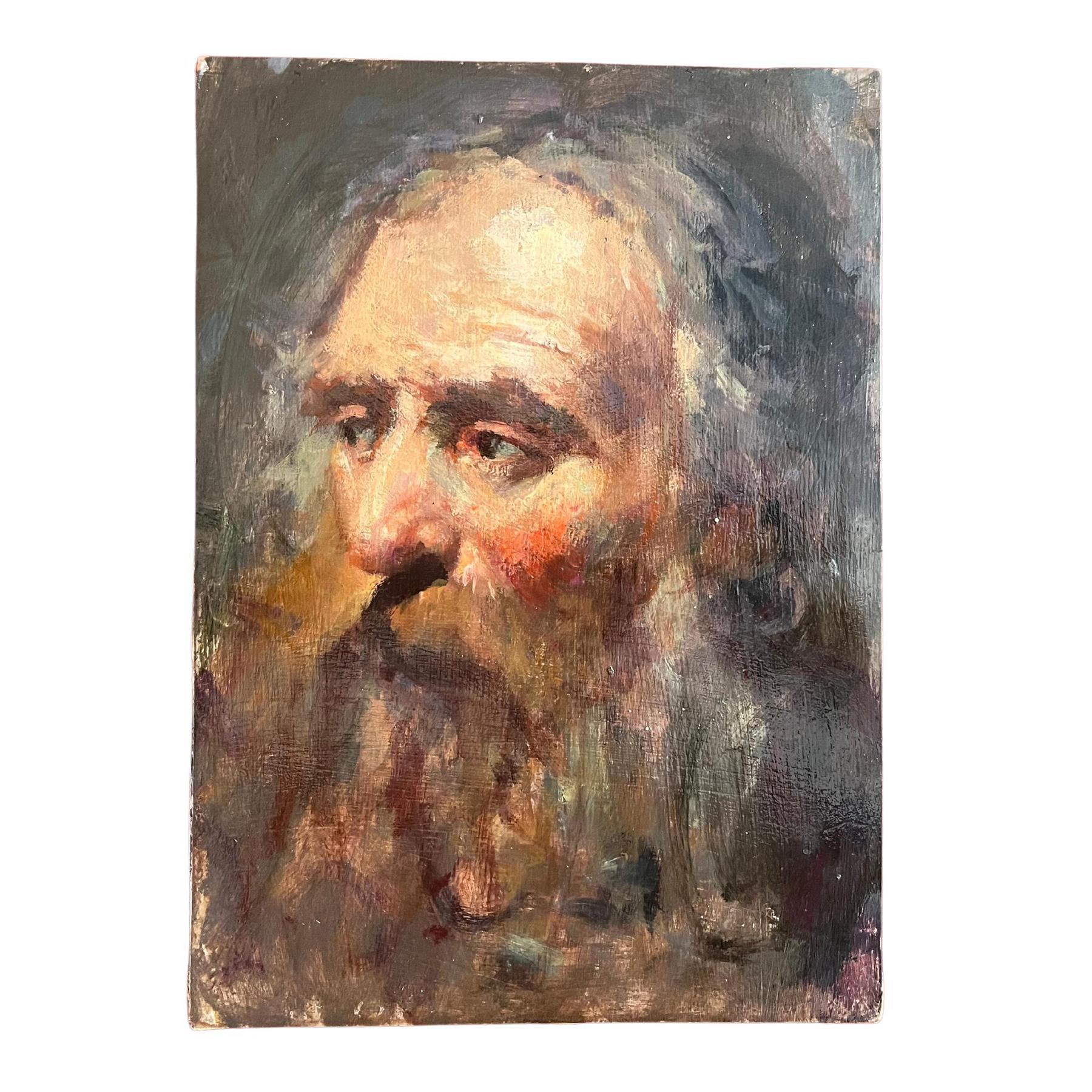 Dipinto olio su tavola raffigurante Ritratto di volto di anziano, periodo XX...