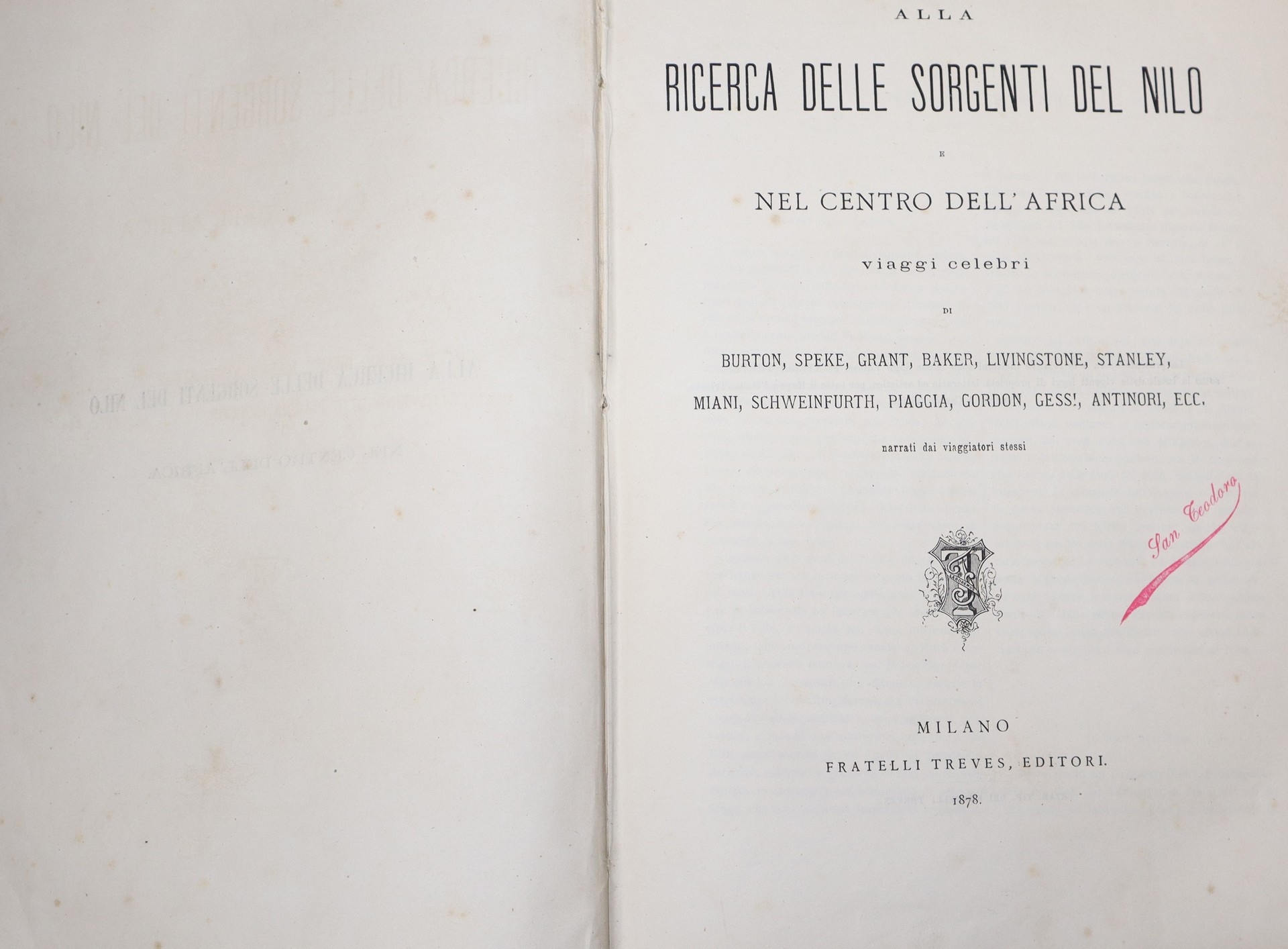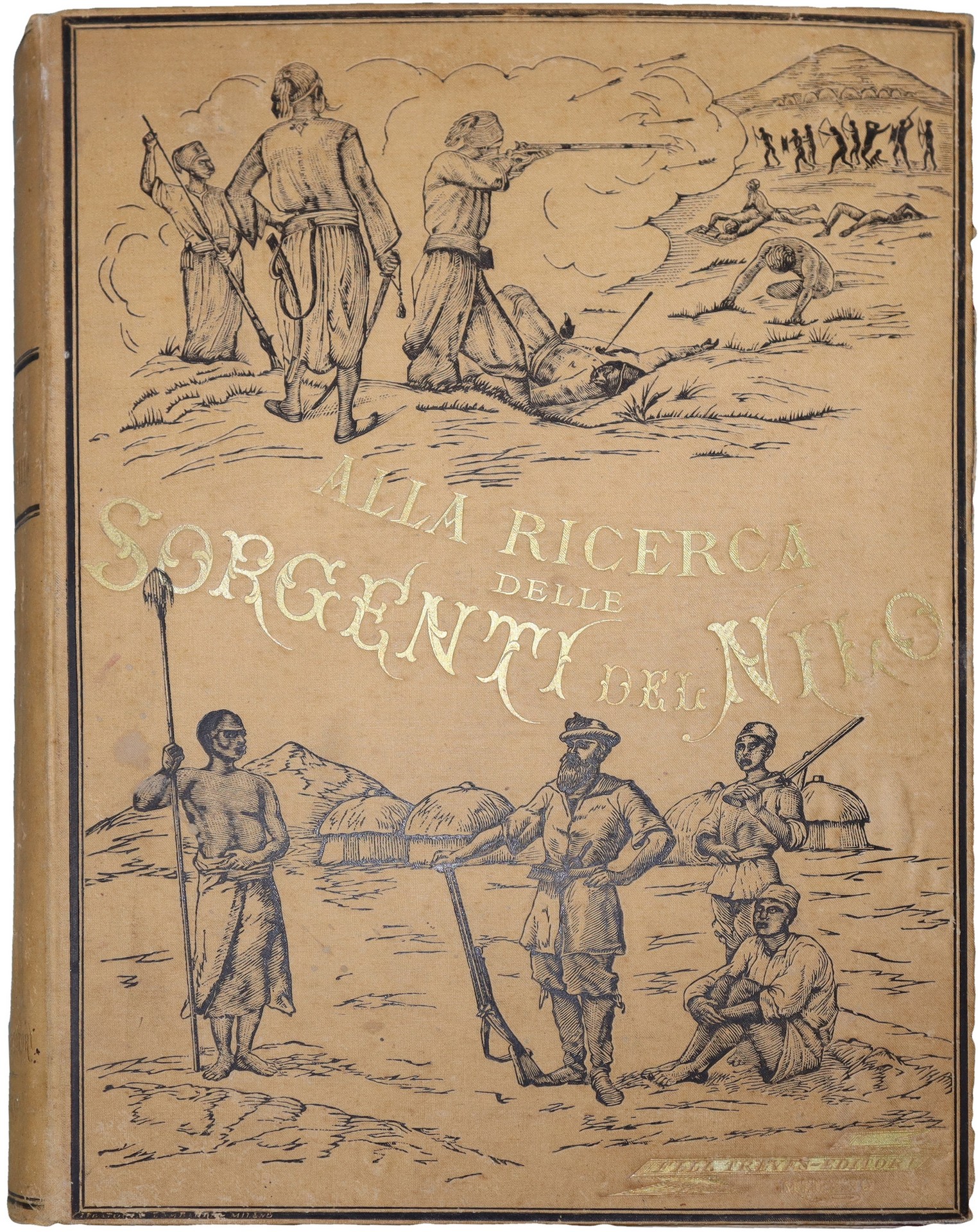 Alla ricerca delle sorgenti del Nilo e nel centro dell'Africa, 1878 Milano, Fratelli Treves, Editori. Presenti fioritureMilano, Fratelli Treves, Editori. Presenti fioriture
