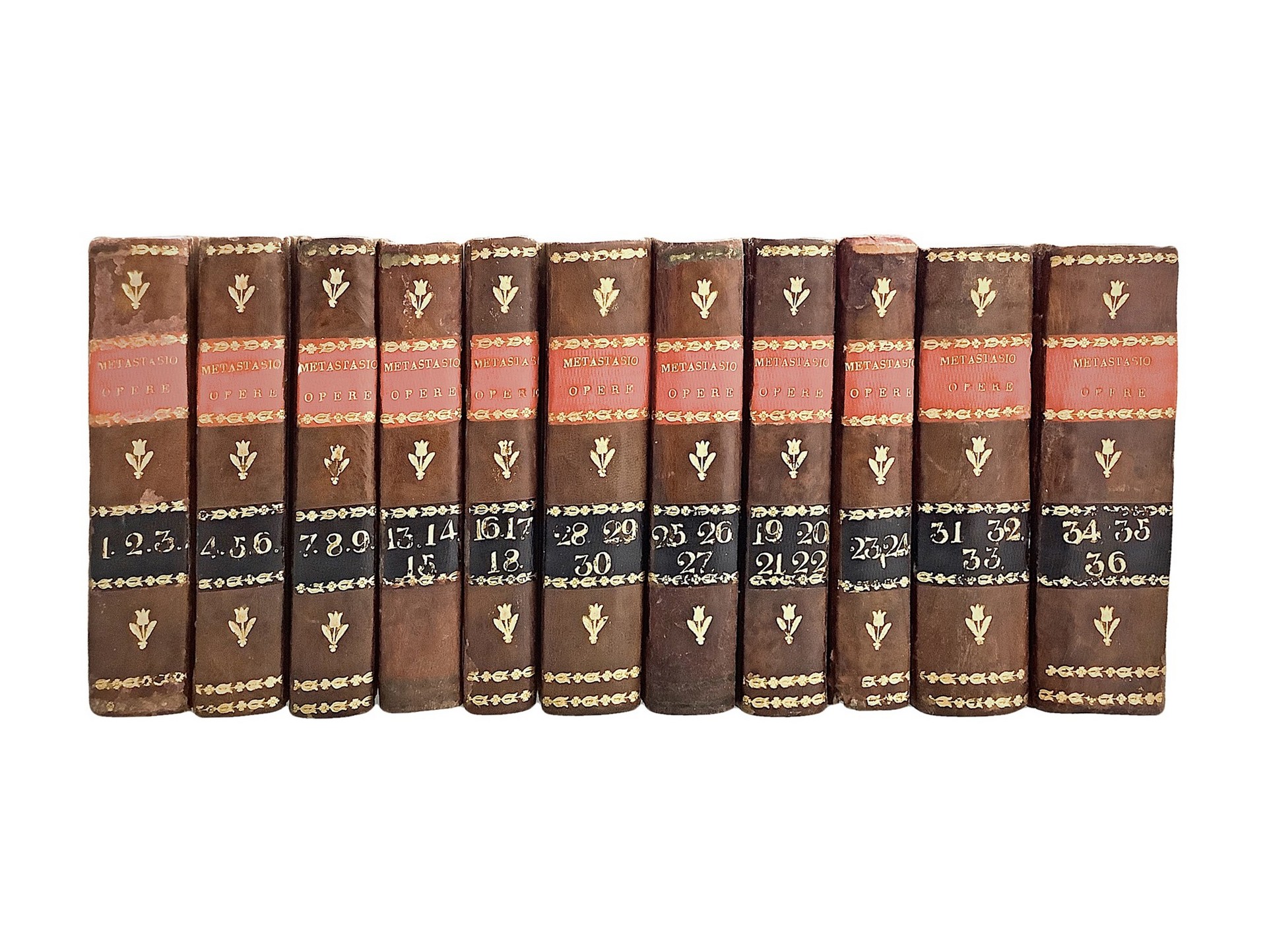 Pietro Metastasio - Opere di Pietro Metastasio, Early 19th secolo Collana contenente tomi: I, II, III, IV, V, VI, VII, VIII, IX, XIII, XIV, XV, XVI, XVII, XVIII, XIX, XX, XXI, XXII, XXIII, XIV, XXV, XXVI, XXVII, XXVIII, XXIX, XXX, XXXI, XXXII, XXXIII, XXXIV, XXXV, XXXVI. Venezia, 1827 dai tipi di Giuseppe Antonelli Libraio-CalcografoCollana contenente tomi: I, II, III, IV, V, VI, VII, VIII, IX, XIII, XIV, XV, XVI, XVII, XVIII, XIX, XX, XXI, XXII, XXIII, XIV, XXV, XXVI, XXVII, XXVIII, XXIX, XXX, XXXI, XXXII, XXXIII, XXXIV, XXXV, XXXVI. Venezia, 1827 dai tipi di Giuseppe Antonelli Libraio-Calcografo