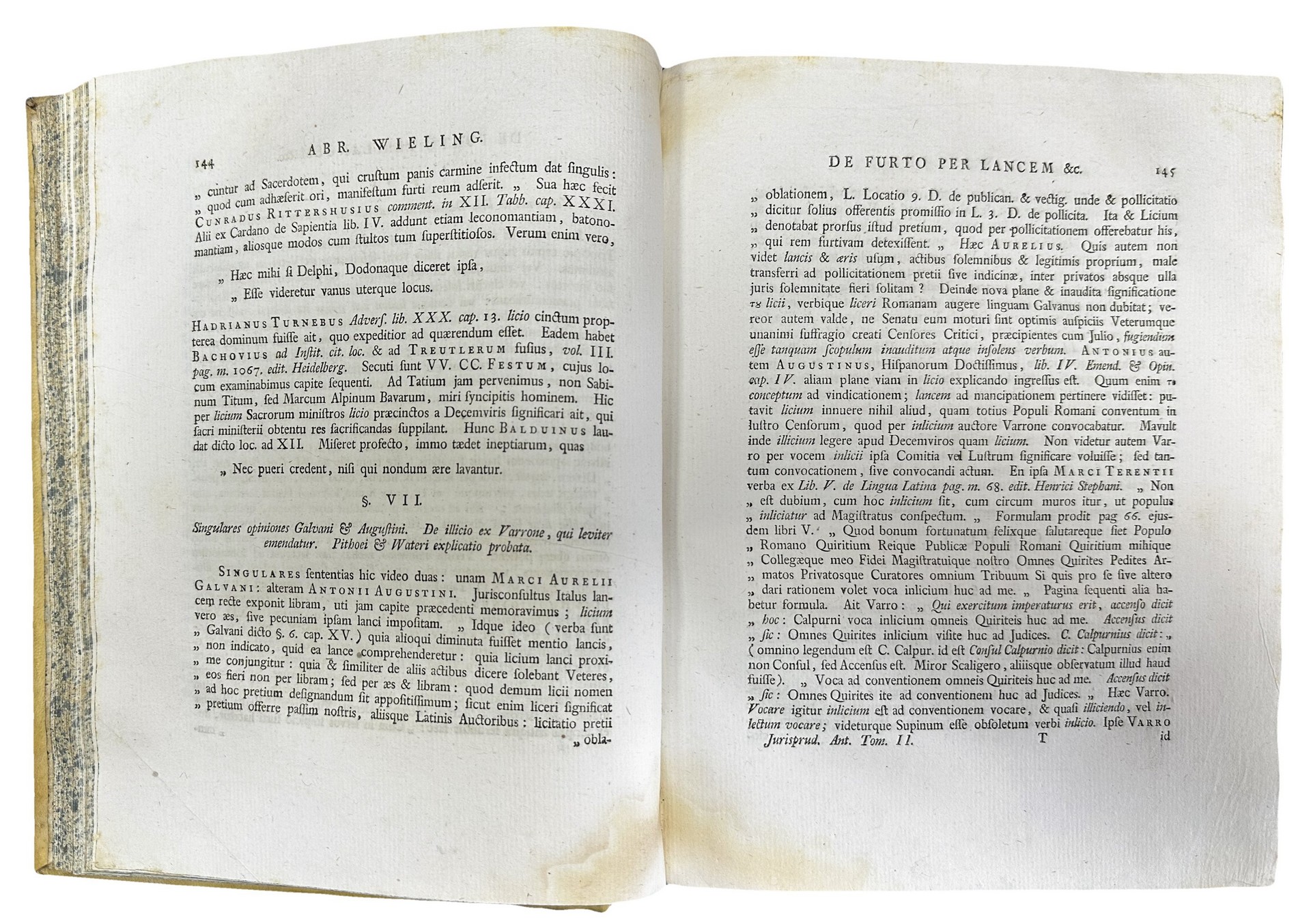 Jurisprudentia Antiqua continens opuscula et dissertationes, quibus leges antiquae praesertim mosaicae, gaecae, et romanae. Tomo secondo, 1761 Dan. Fellenberg. Bernae. Sumtibus societatis litterariae. Apud Abr. Wagner, Filium. Copertina in carta pecora.Dan. Fellenberg. Bernae. Sumtibus societatis litterariae. Apud Abr. Wagner, Filium. Copertina in carta pecora.