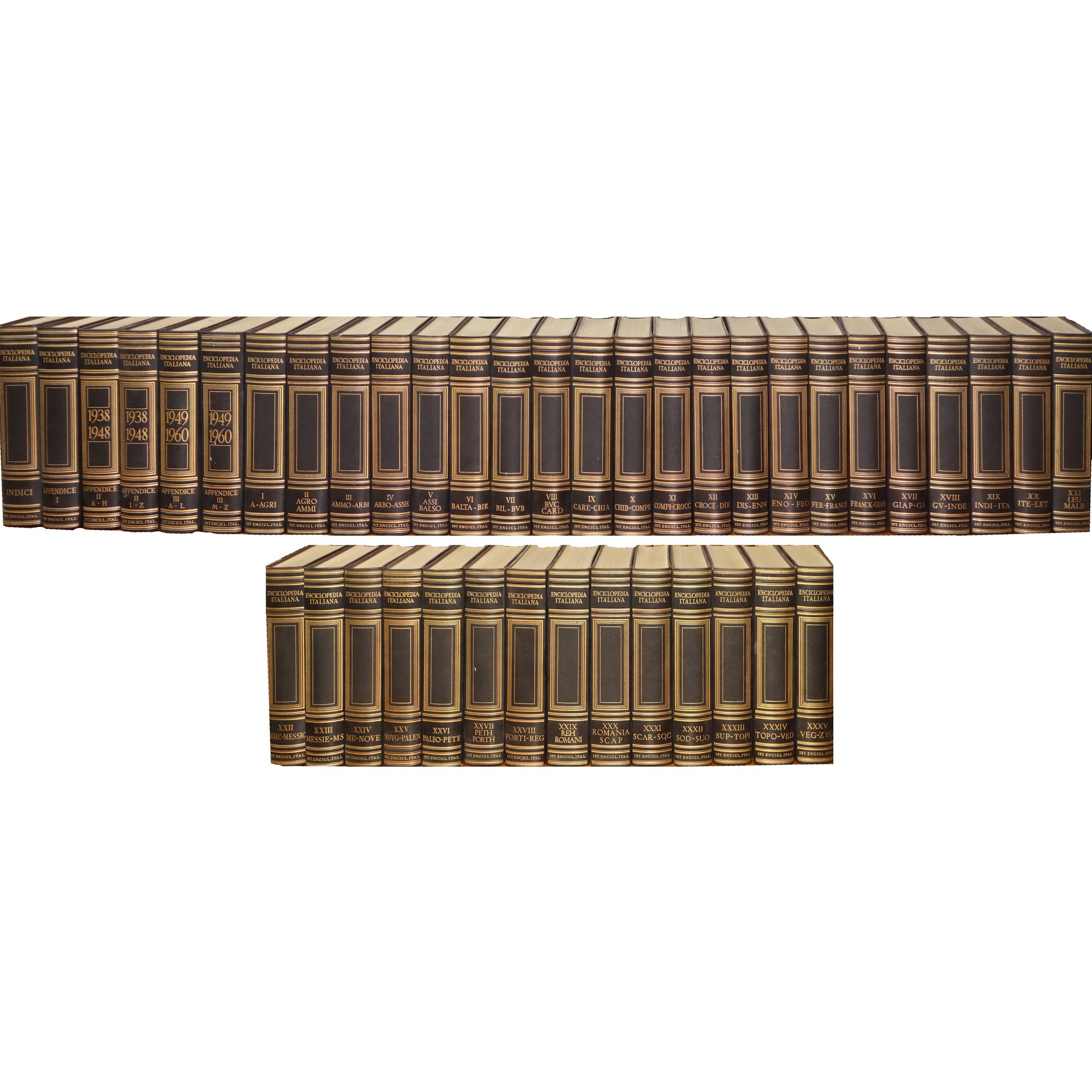 Enciclopedia Treccani, 41 volumi, illustrata, 1949 edition Ottimo stato di conservazione, completa di appendici e indici, 41 volumi totaliOttimo stato di conservazione, completa di appendici e indici, 41 volumi totali