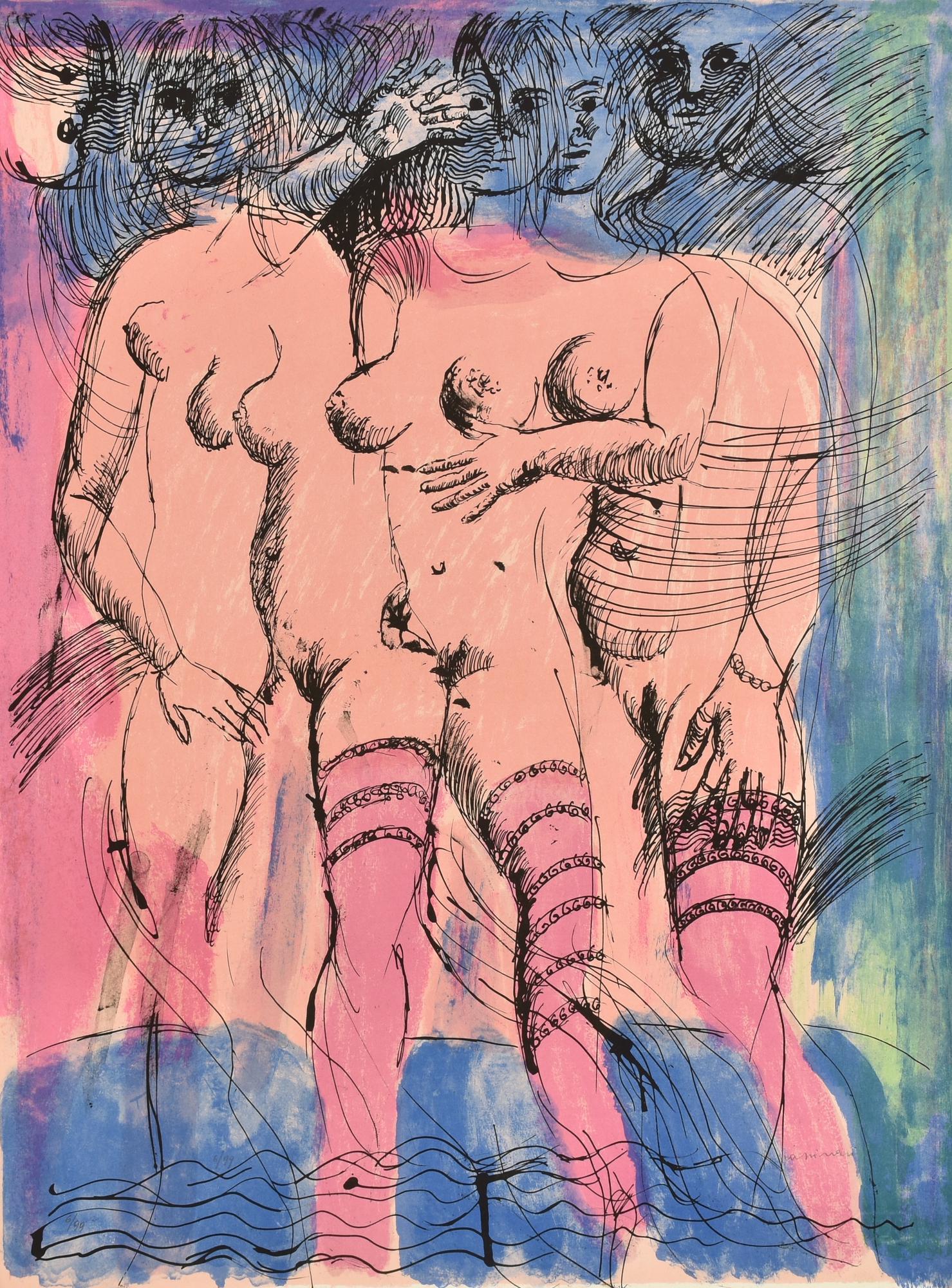 Lotto 14 | Bruno Cassinari TRE FIGURE litografia a colori su carta, cm 63x47,5; es. 6/99...