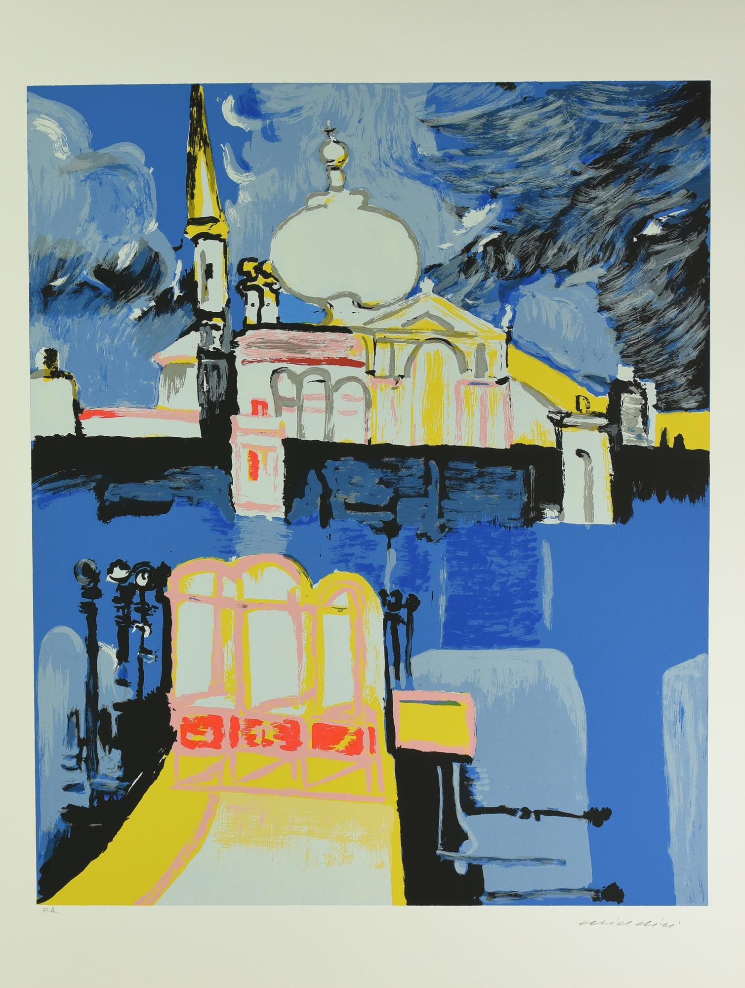 Remo Brindisi VENEZIA, CHIESA DELLA SALUTE serigrafia su carta, cm 70x50; es....